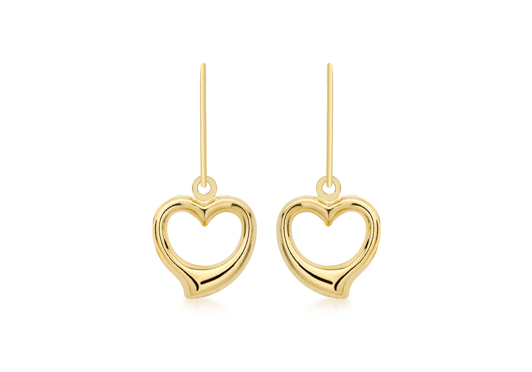 Details: 2 x 12mm x 14mm Heart Width: 12mm Height: 28mm Finish: Polished Fitting: Hook Style: Drop Product Type: Earrings Metal Colour: Yellow Metal: 18ct Gold