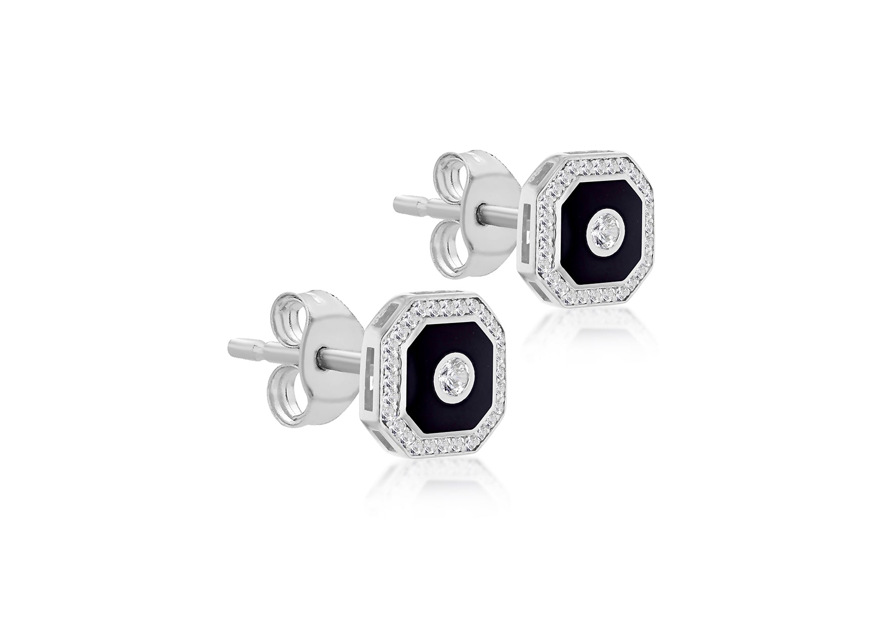 9ct White Gold 0.06ct & 0.56ct Diamond Black Octagon Stud Earrings