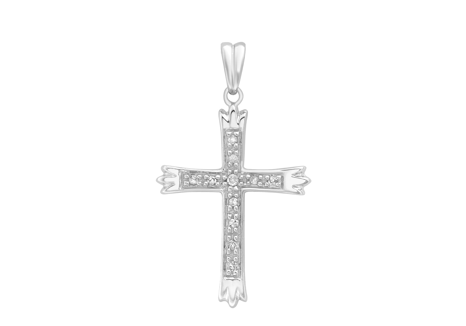 9ct White Gold 0.05ct Diamond Cross Pendant