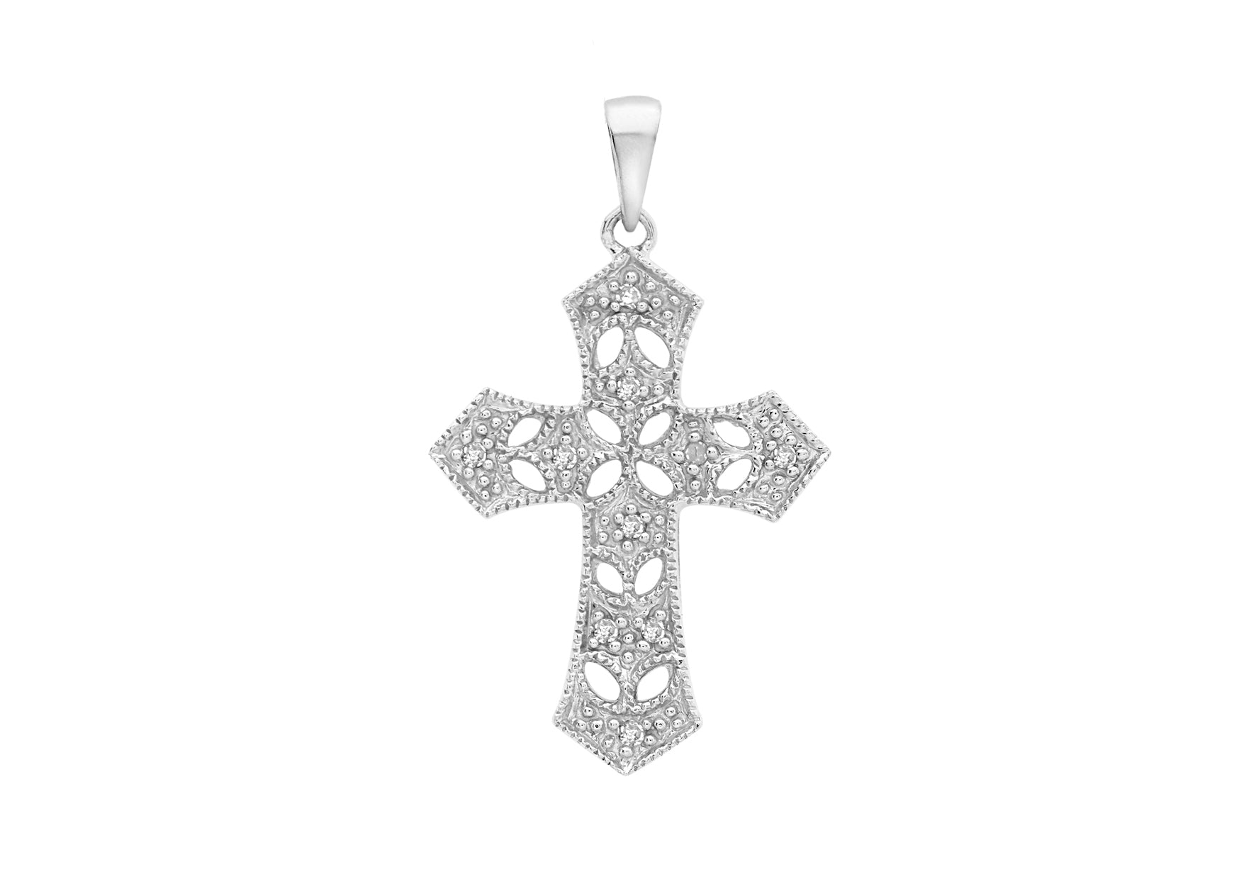 9ct White Gold 0.05ct Diamond Filigree Cross Pendant