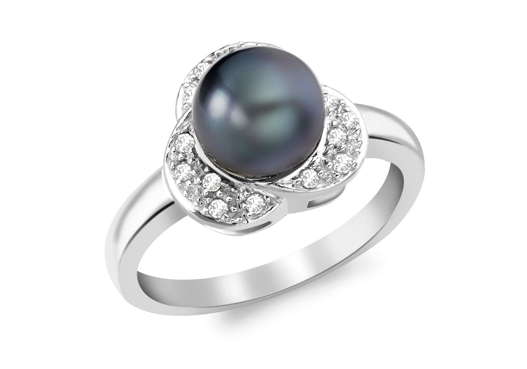 Average Carat Weight: 0.10ct Ring Shank: 2mm Length: 11mm Width: 11mm Setting: Pave Stone Details: 7mm Grey Pearl Style: Stone Set Product Type: Rings Metal Colour: White Metal: 9ct Gold