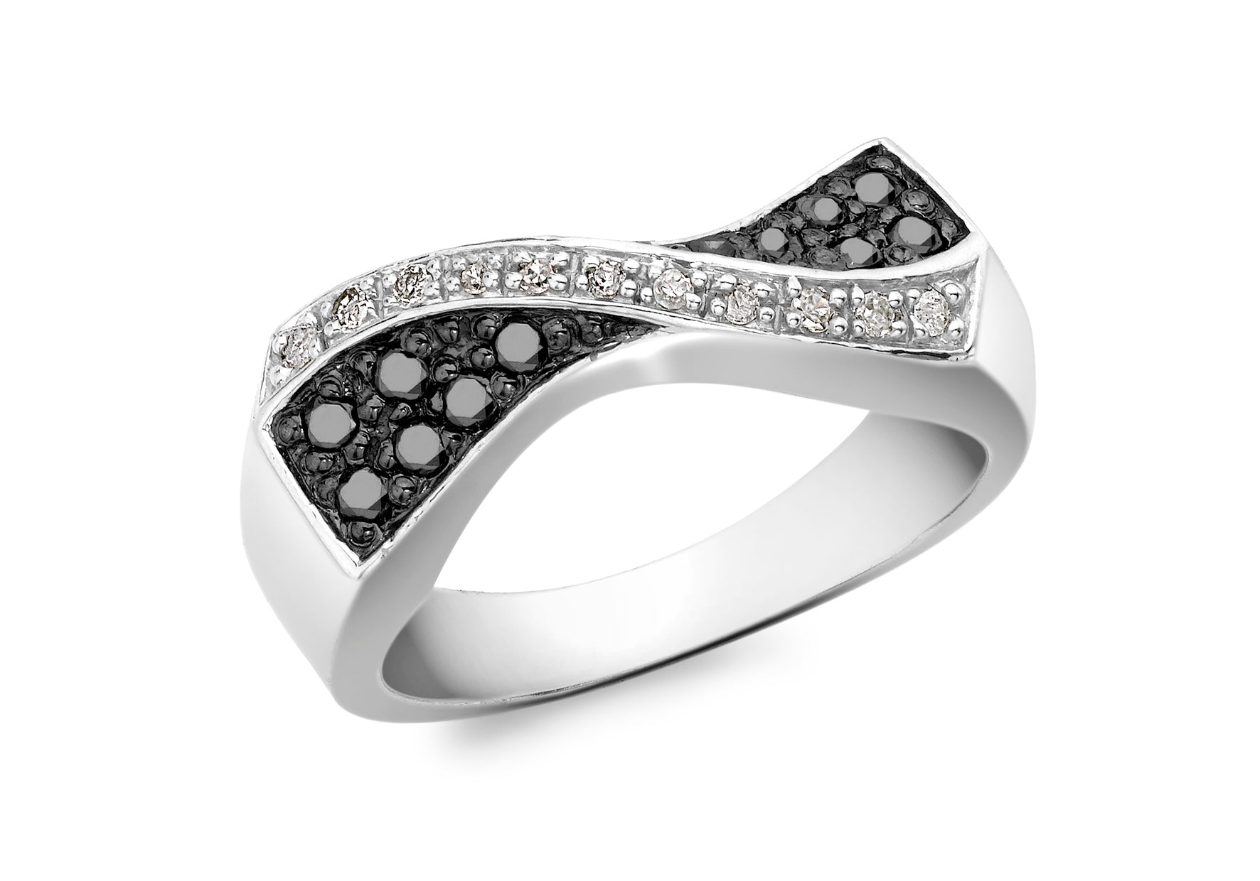 9ct White Gold 0.25ct Black & White Diamond Crossover Wave Ring