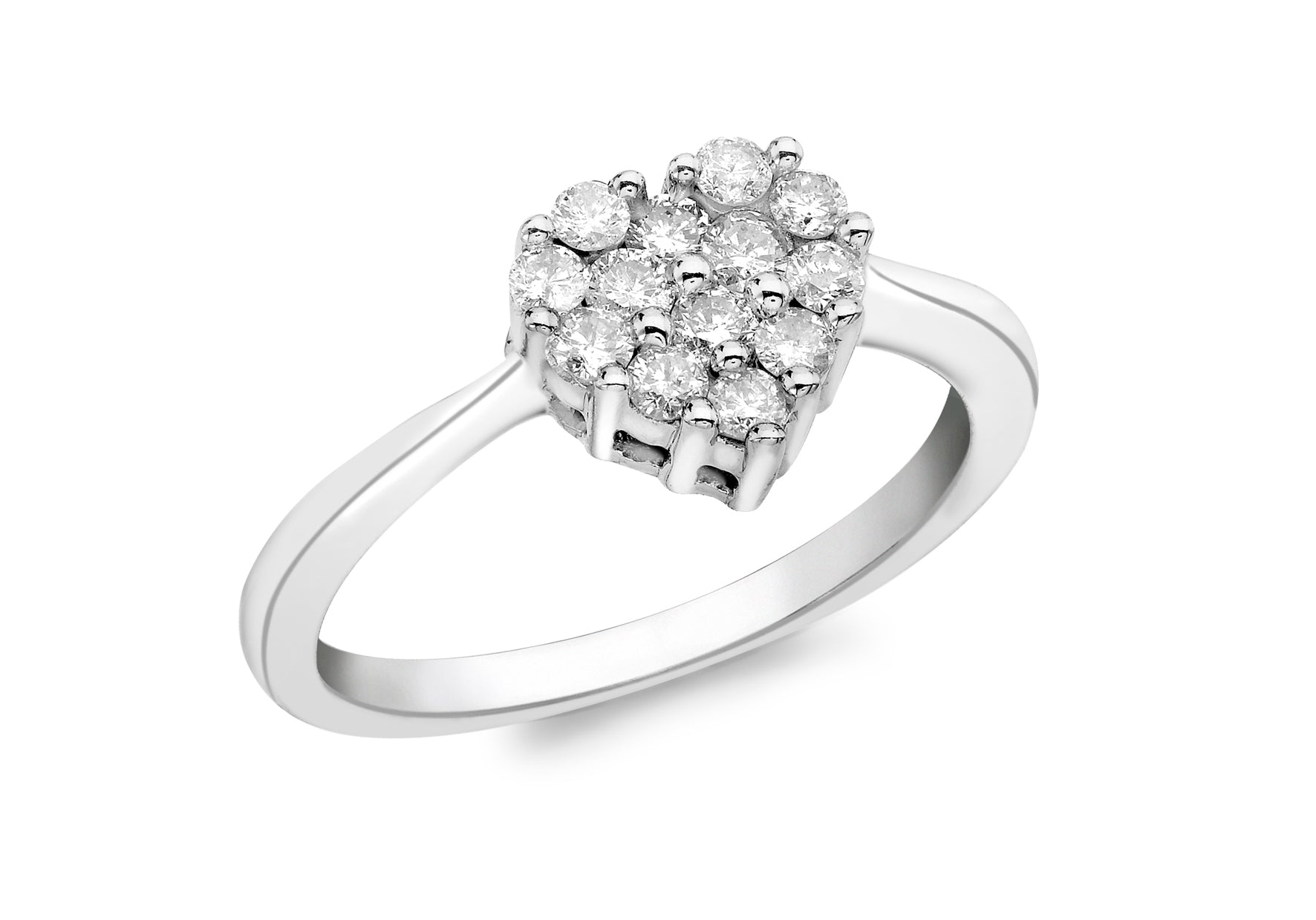 9ct White Gold 0.50ct Diamond Cluster Heart Ring
