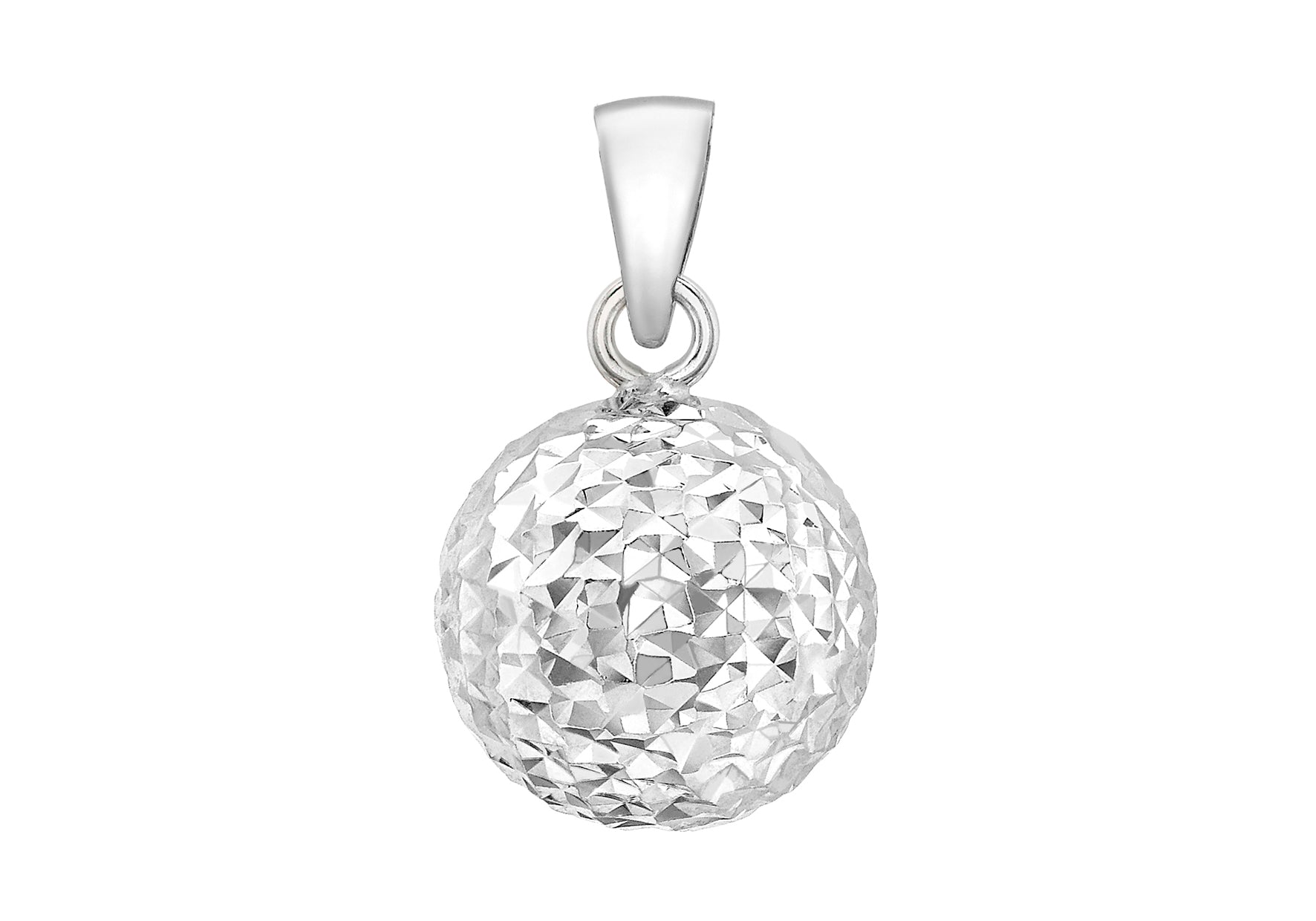 9ct White Gold 10mm Diamond Cut Ball Pendant