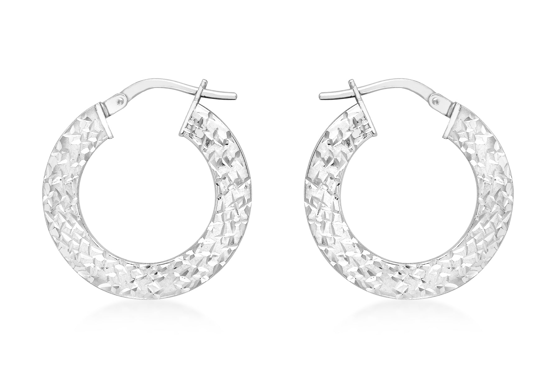 9ct White Gold Diamond Cut Flat Creole Earrings