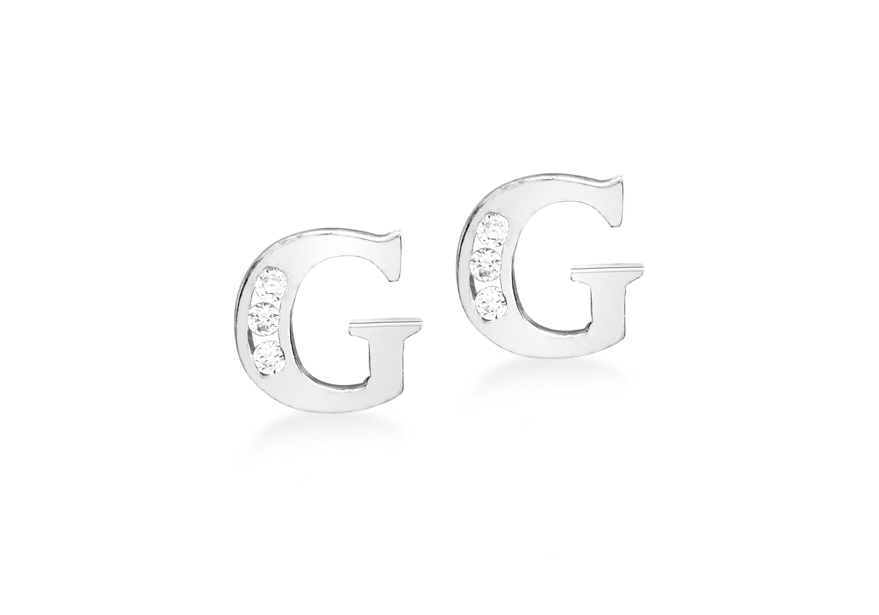 9ct White Gold Zirconia 'G' Initial Stud Earrings