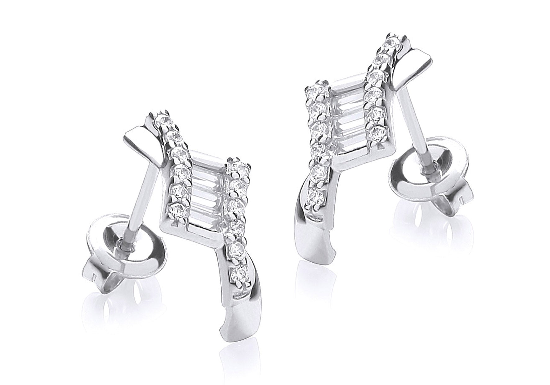 Angular elegance meets modern minimalism in these gold stud earrings, each set with a crisp, rectangular baguette-cut zirconia stones. The clean, linear facets of the stones lend a refined geometry, offering a subtle shimmer that feels effortless and contemporary. Designed to sit neatly on the lobe, their sleek profile makes them ideal for both understated daily wear and quietly elevated evenings. A polished finish completes the look with cool-toned sophistication.