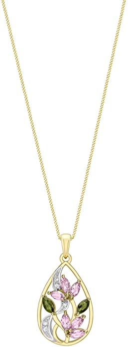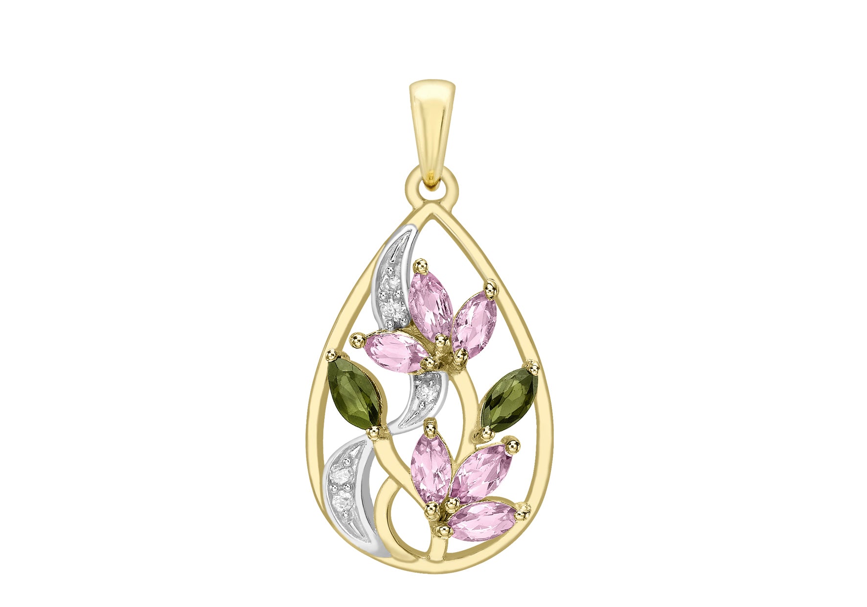 9ct Yellow Gold 0.03ct Diamond & Tourmaline Lotus Pendant