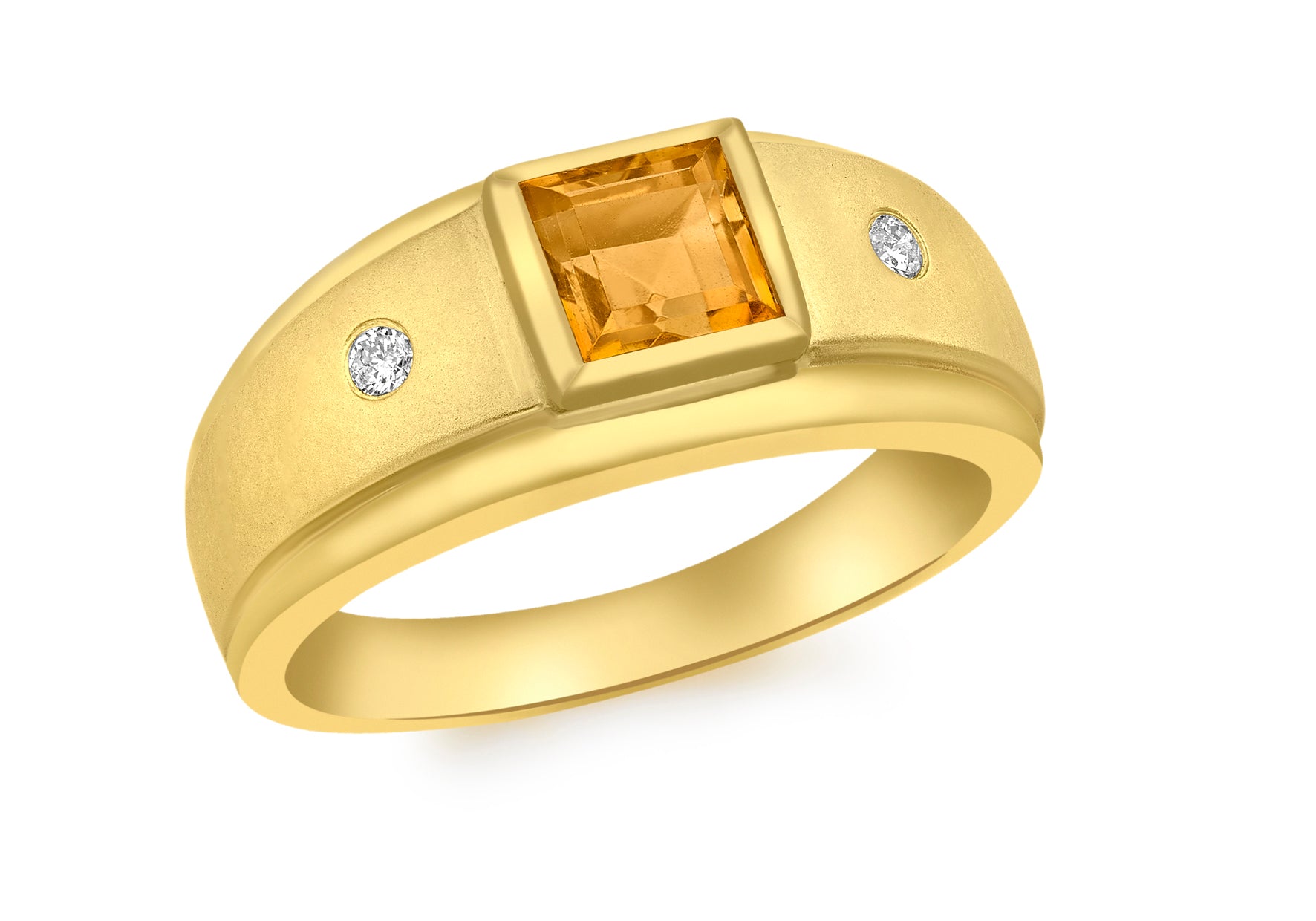Average Carat Weight: 0.05ct; Ring Shank: 2.5mm; Setting: Rubover; Stone Details: Square 5mm x 5mm Citrine; Style: Stone Set Metal Colour: Yellow Metal: 9ct Gold
