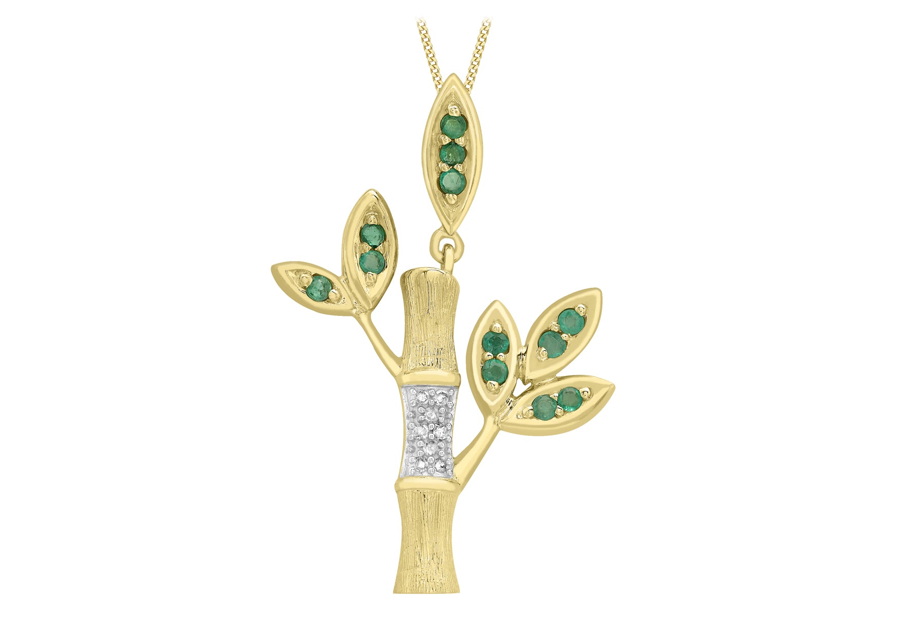 9ct Yellow Gold 0.05ct Diamond & Emerald Bamboo Tree Pendant