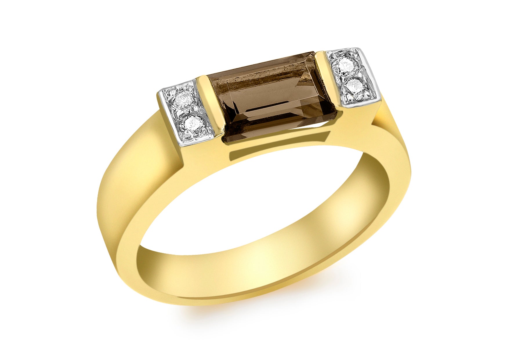 9ct Yellow Gold 0.08ct Diamond and Smokey Quartz Ring