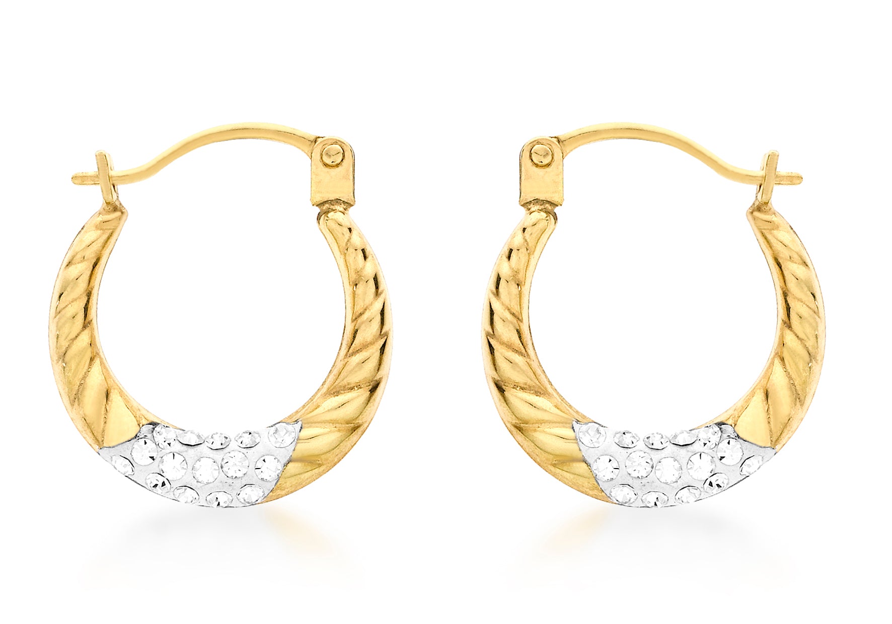 9ct Yellow Gold 13.4mm x 15mm Crystalique Round Creole Earrings Width: 13.4mm; Height: 15mm; Fitting: Hinged Post; Style: Creole Metal Colour: Yellow Metal: 9ct Gold