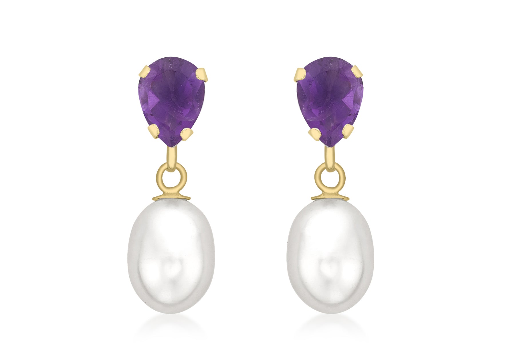 9ct Yellow Gold Amethyst and Pearl Teardrop Earrings