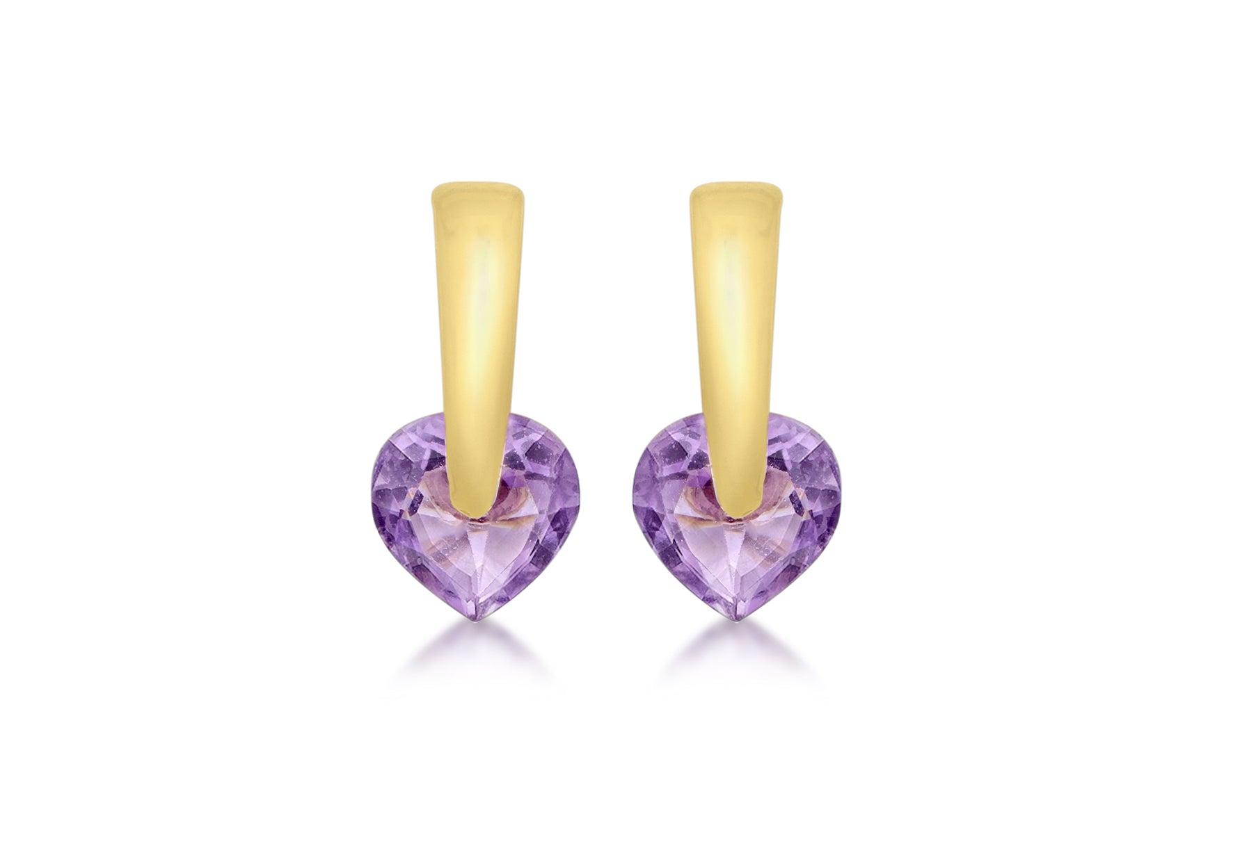 9ct Yellow Gold Amethyst Heart Stud Earrings
