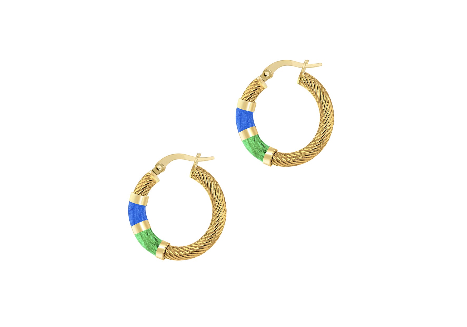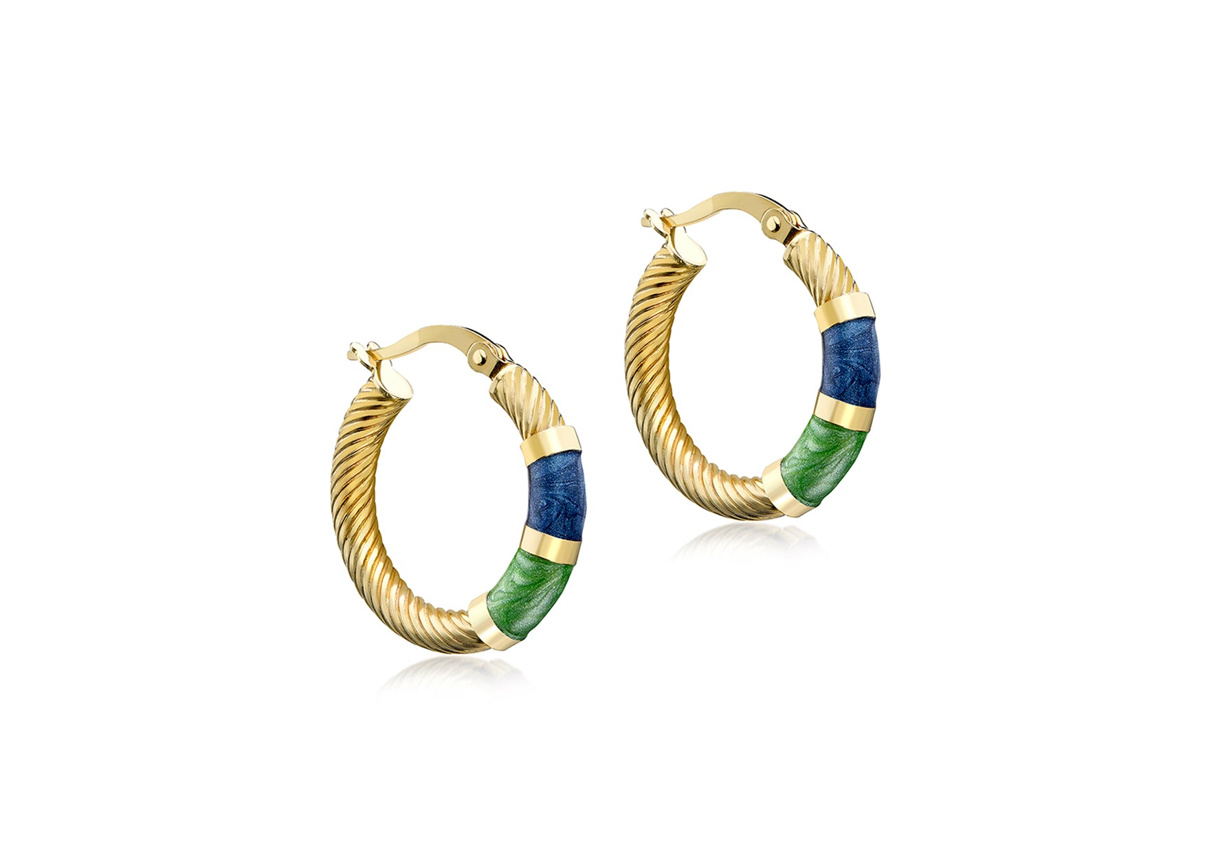 9ct Yellow Gold Blue & Green Glaze Twist Hoop Earrings