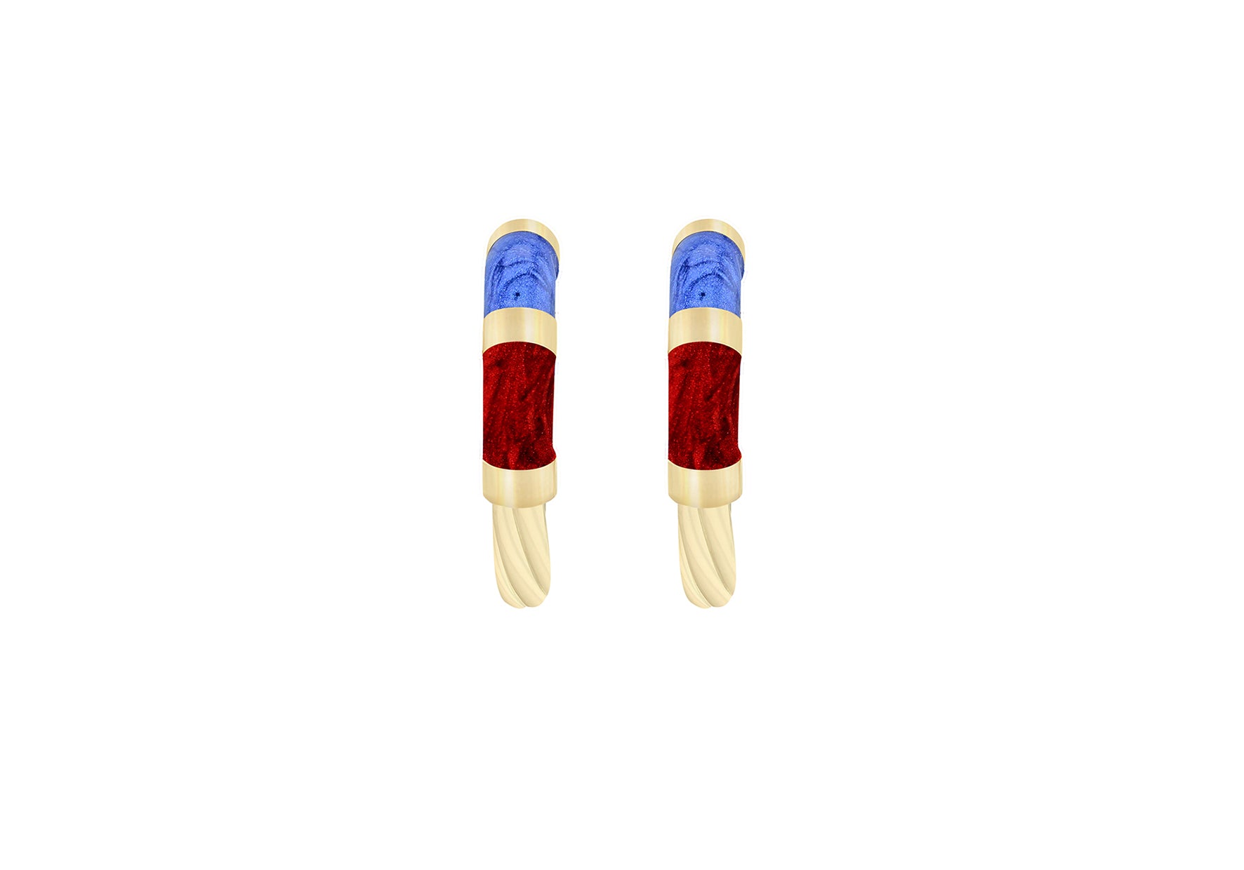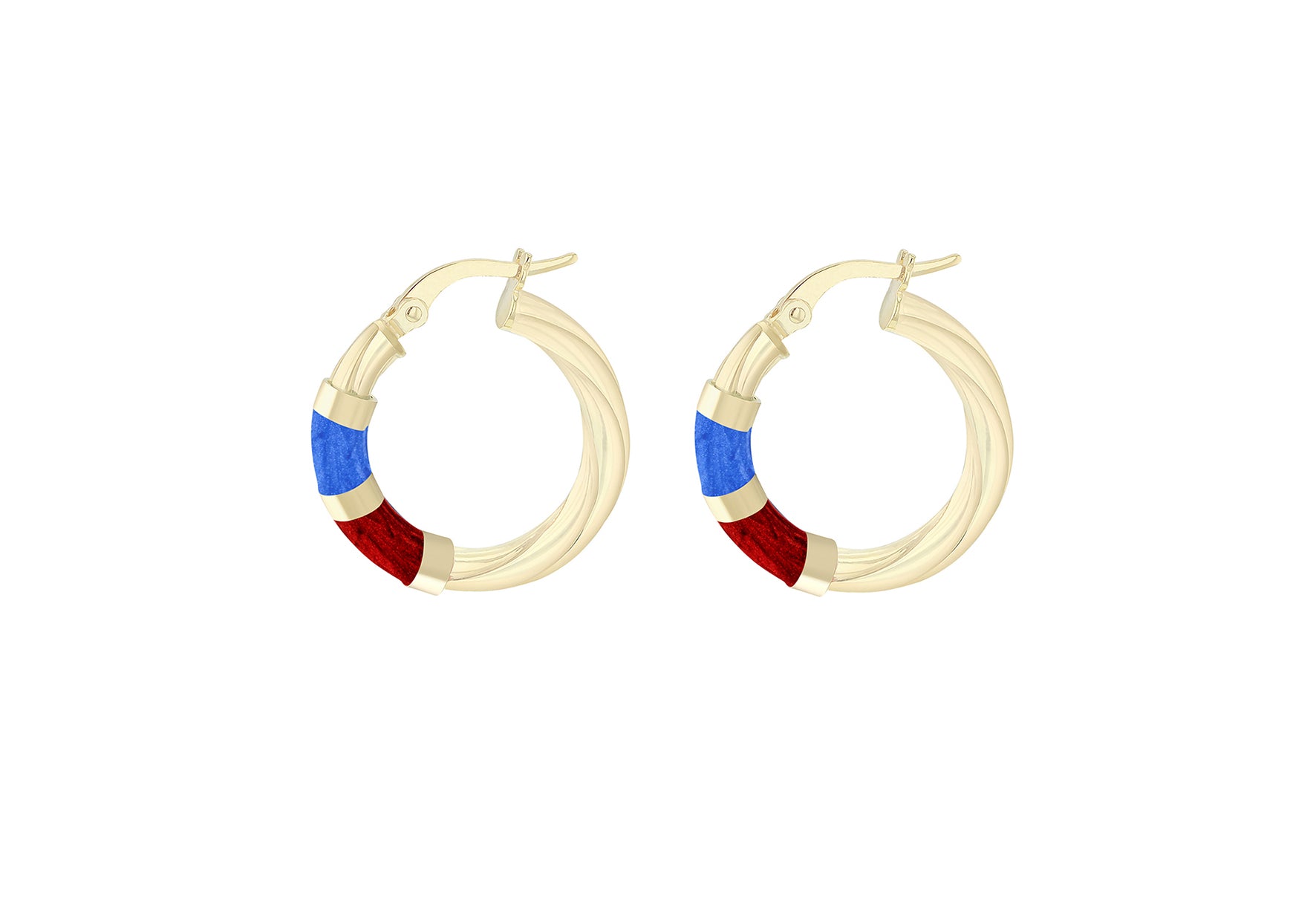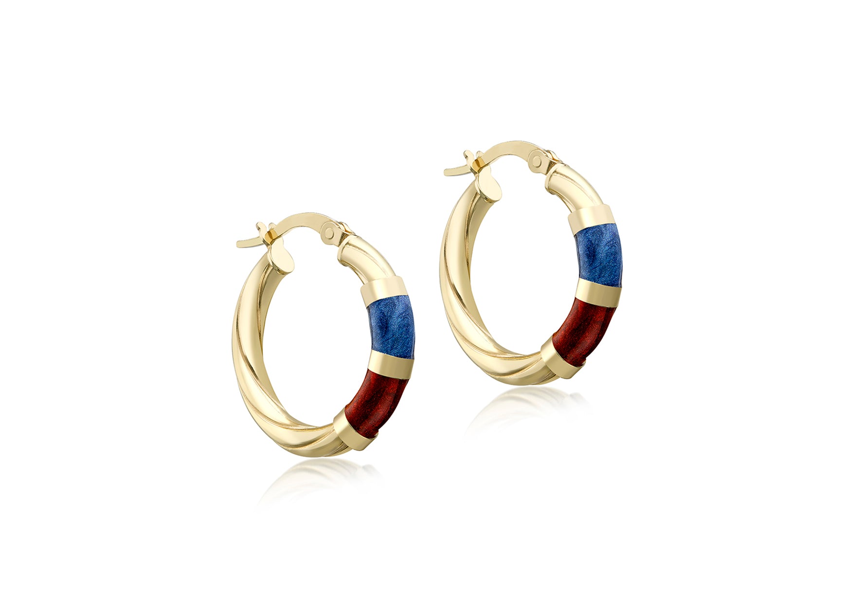 9ct Yellow Gold Blue and Red Enamel Twist Hoop Creole Earrings