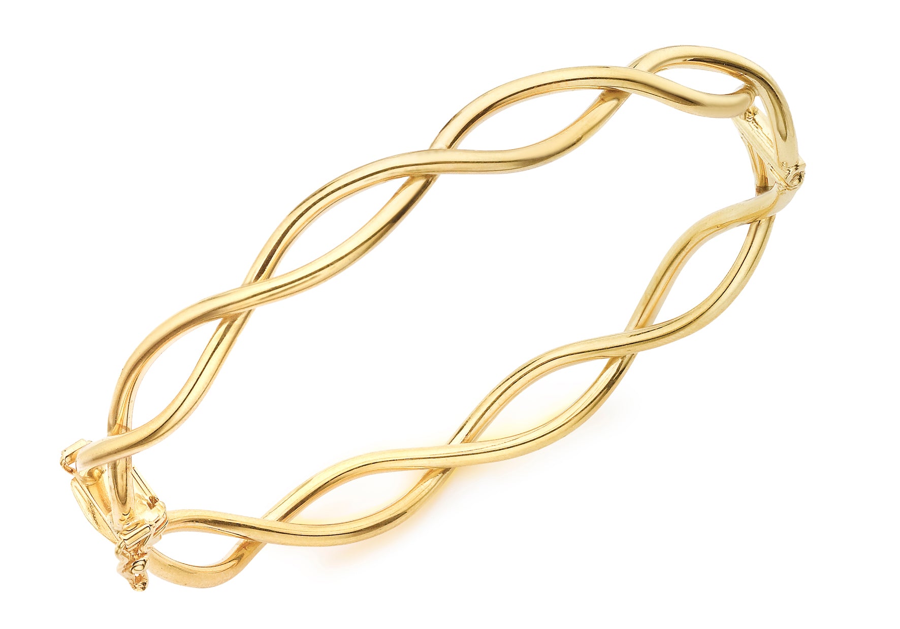 Crafted from premium 9ct solid gold, the bangle has a warm, lustrous finish highlighting its elegant curves. The secure clasp ensures a comfortable fit while maintaining the piece’s seamless appearance.