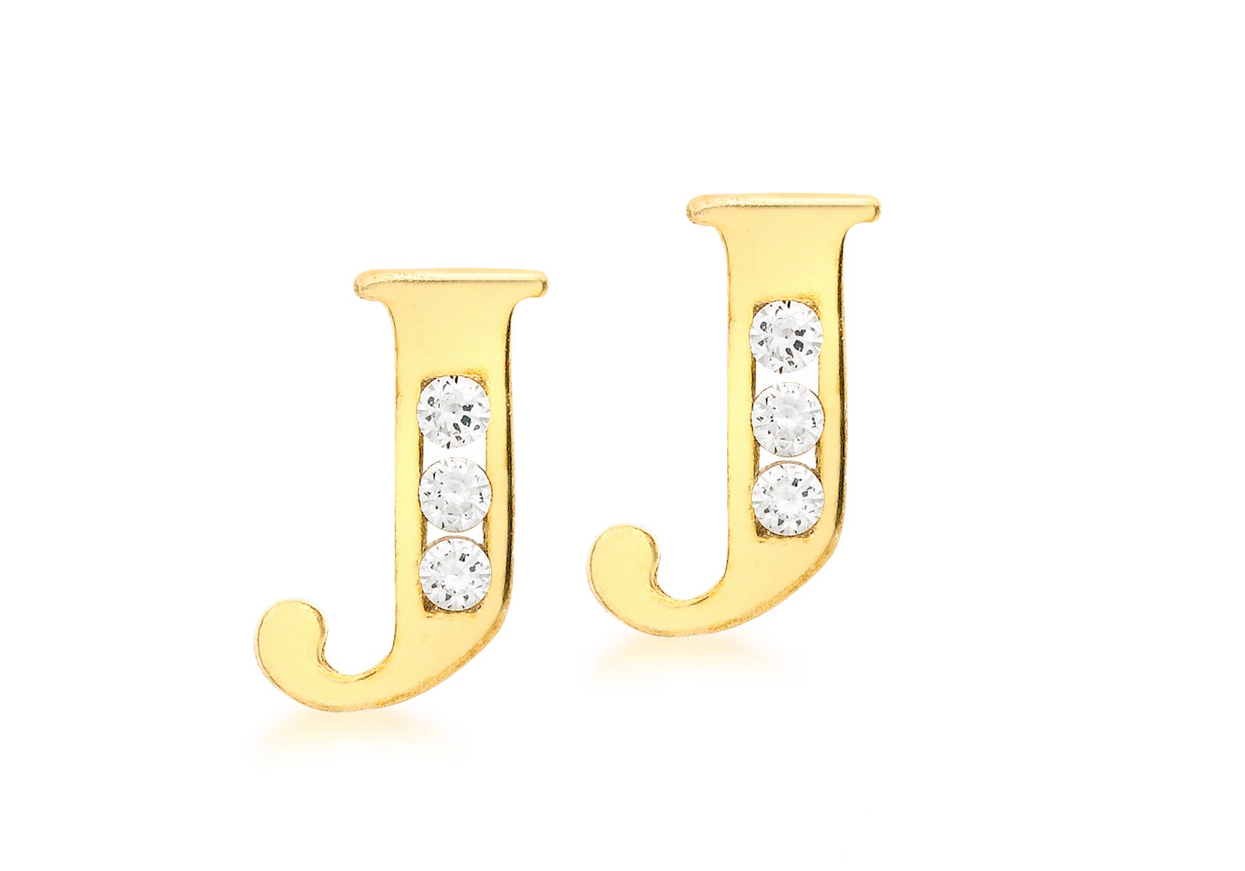 9ct Yellow Gold Zirconia 'J' Initial Stud Earrings