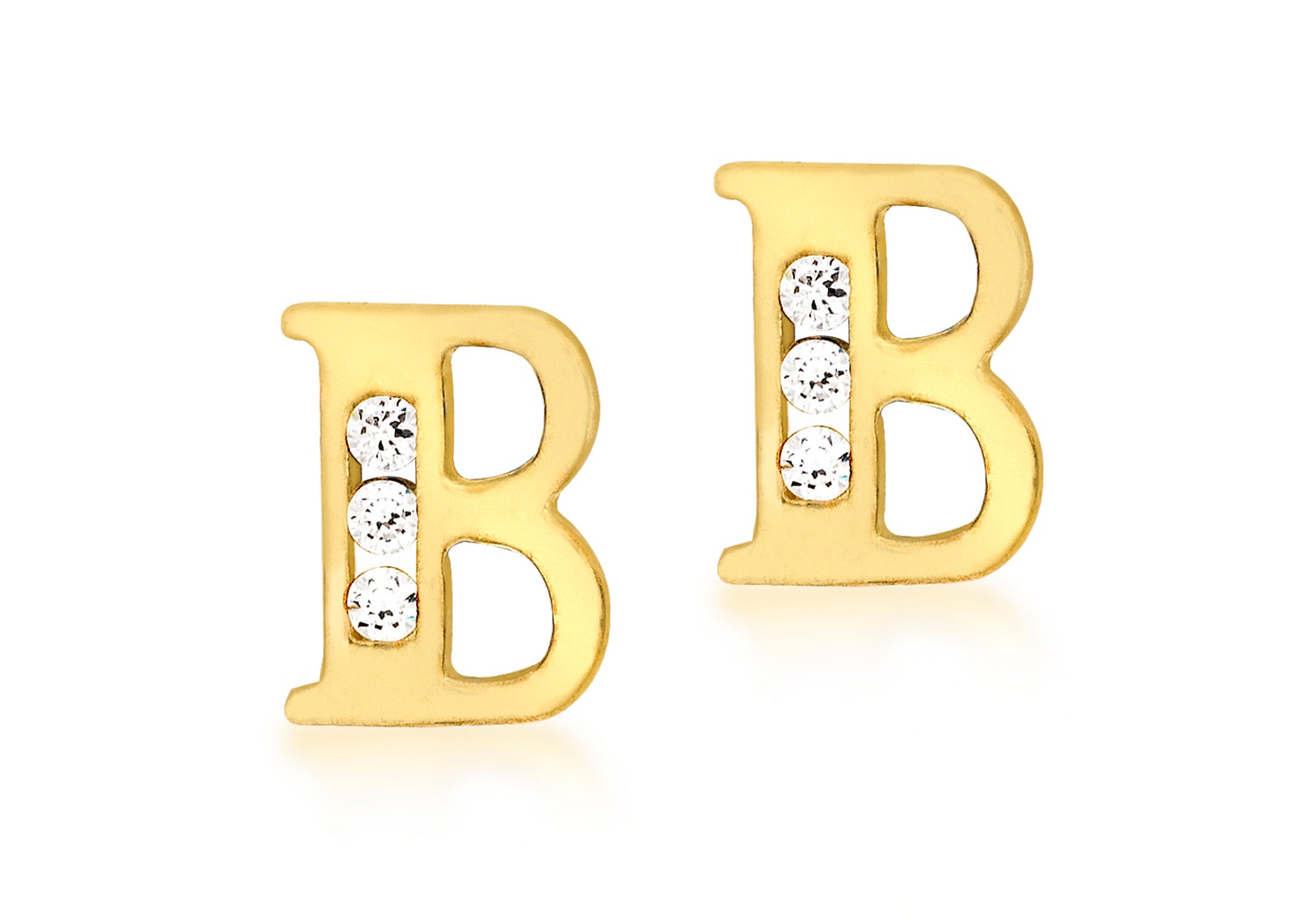 9ct Yellow Gold Zirconia 5mm x 7mm 'B' Initial Stud Earrings Width: 5mm; Height: 7mm; Fitting: Post; Style: Stud Metal Colour: Yellow Metal: 9ct Gold