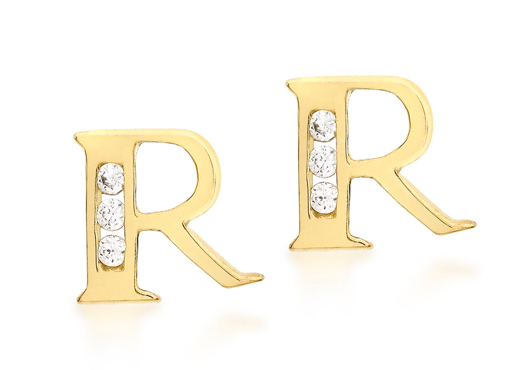 9ct Yellow Gold Zirconia 'R' Initial Stud Earrings