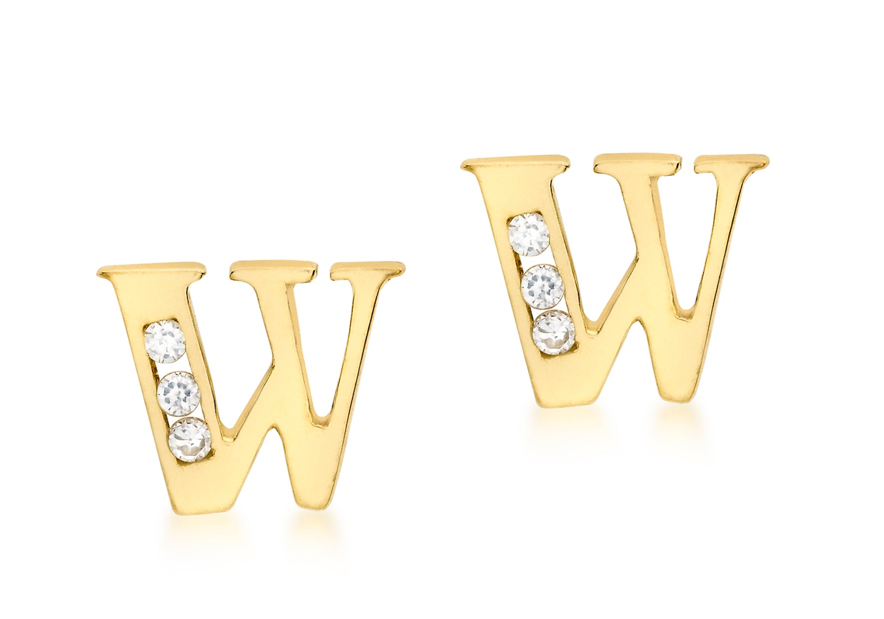 9ct Yellow Gold Zirconia 'W' Initial Stud Earrings