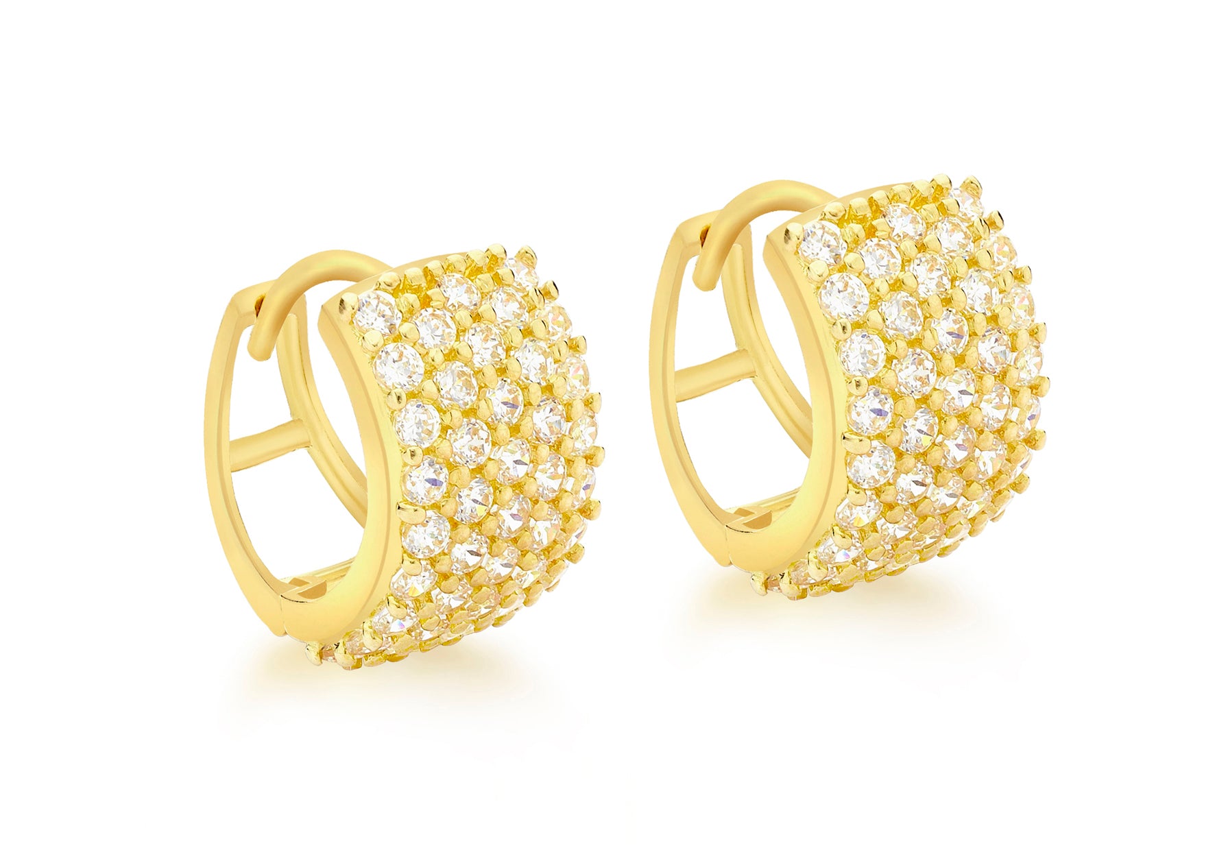 9ct Yellow Gold Zirconia Pave Set Huggy Earrings