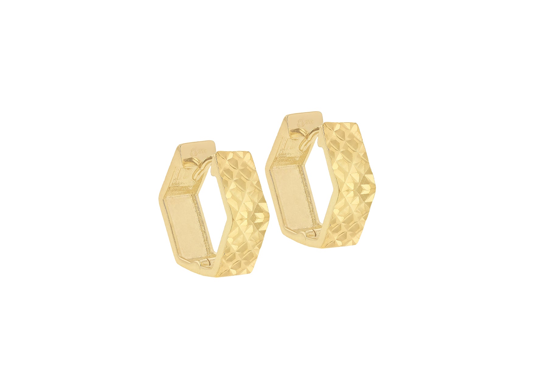 9ct Yellow Gold Diamond Cut Hexagon Huggy Earrings