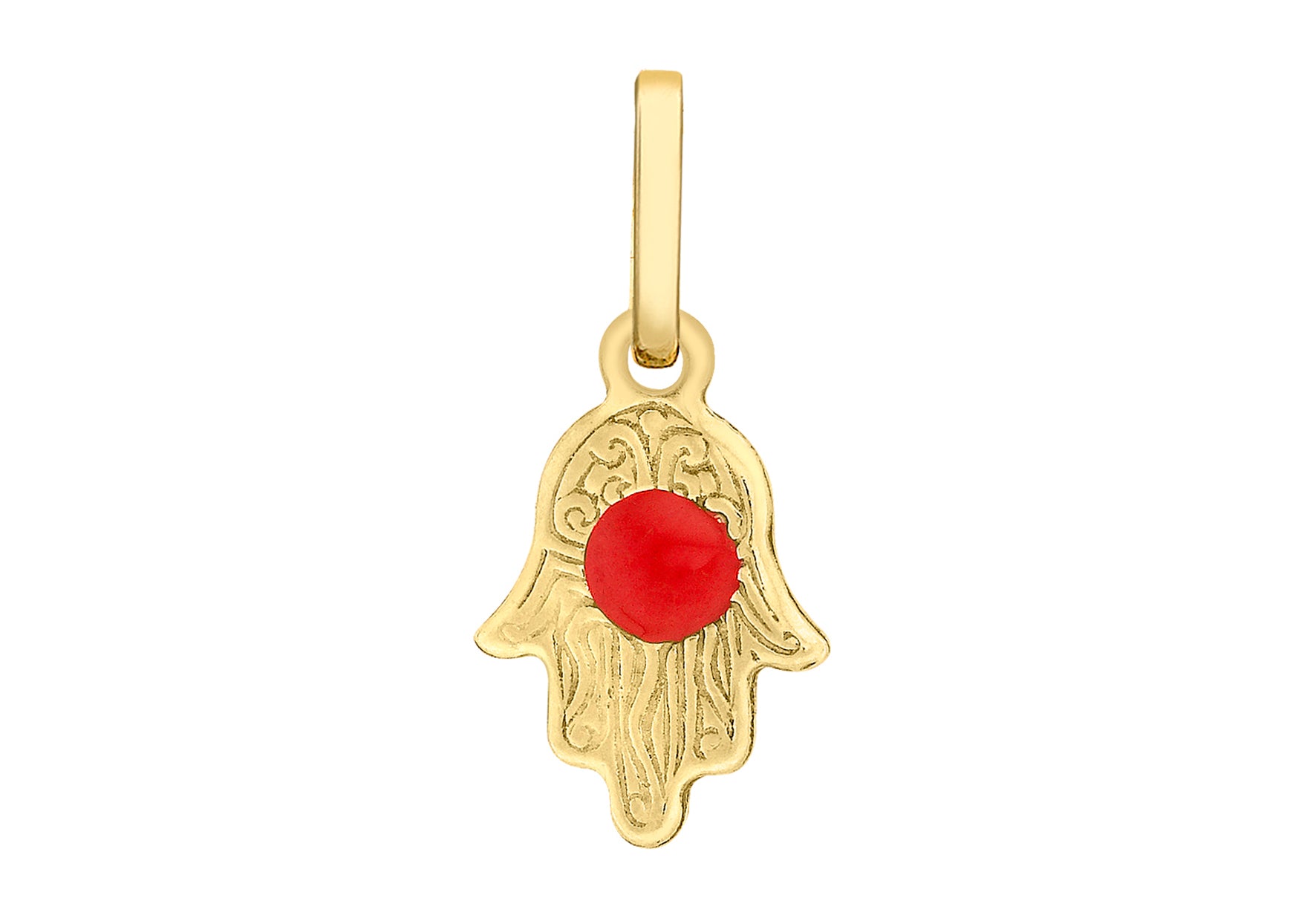 9ct Yellow Gold Enamel Hamsa Hand Pendant