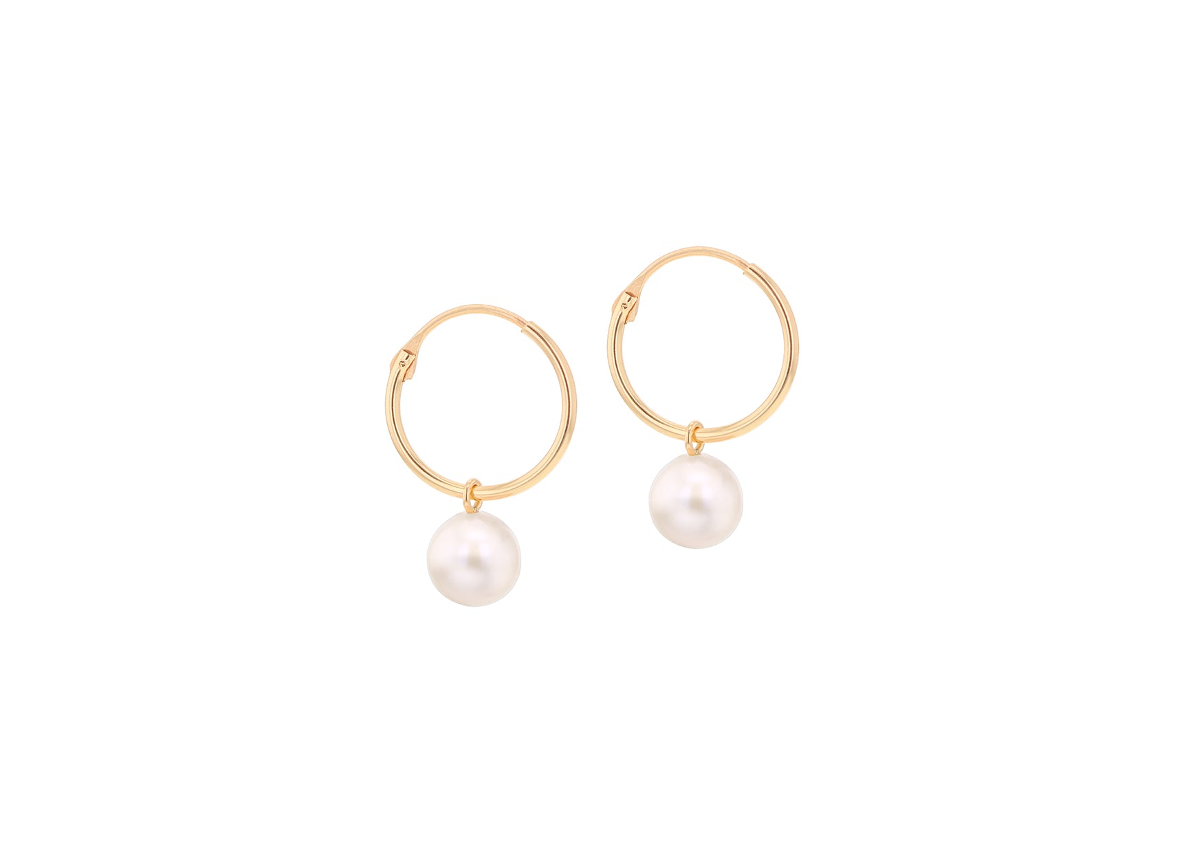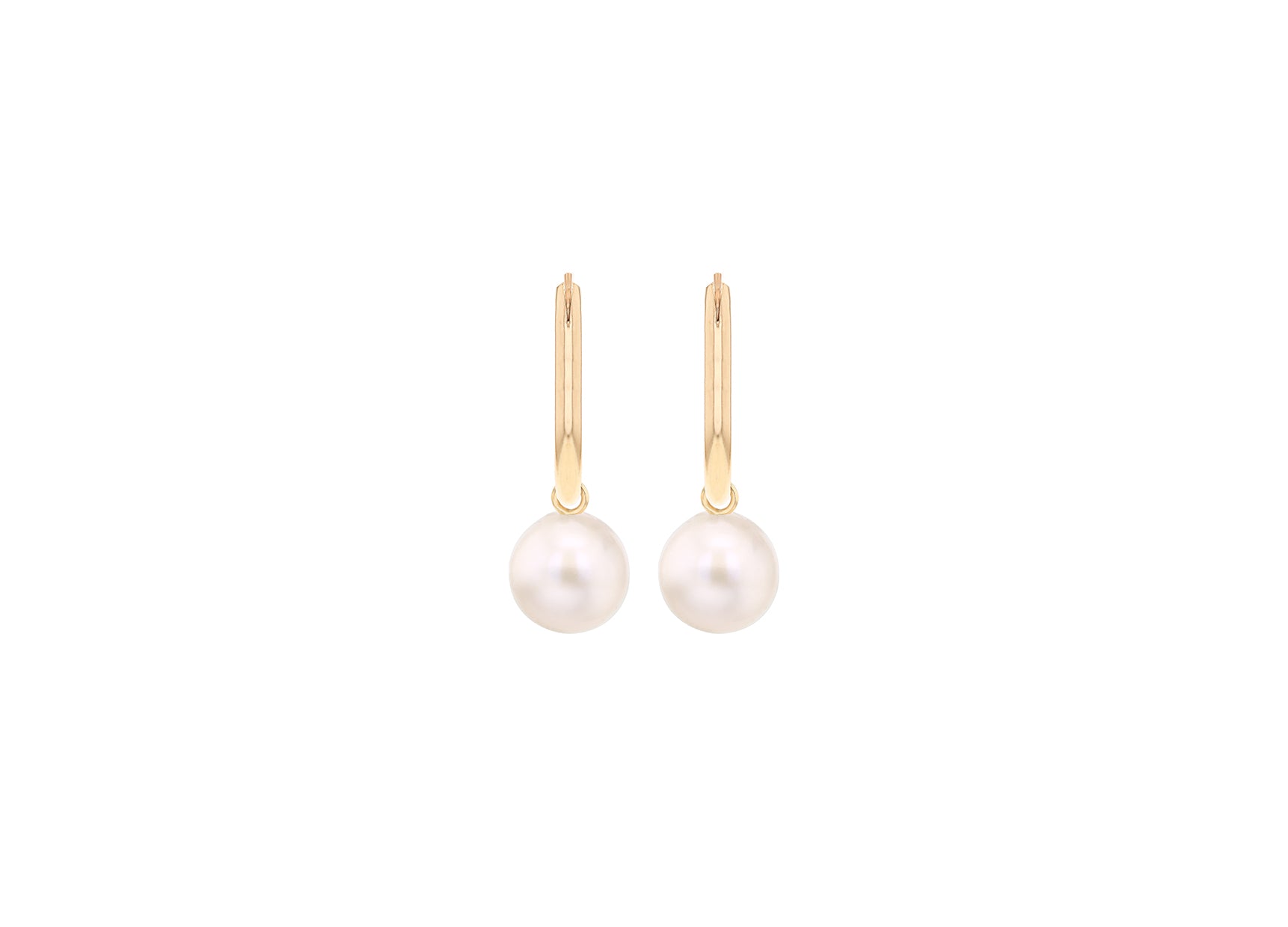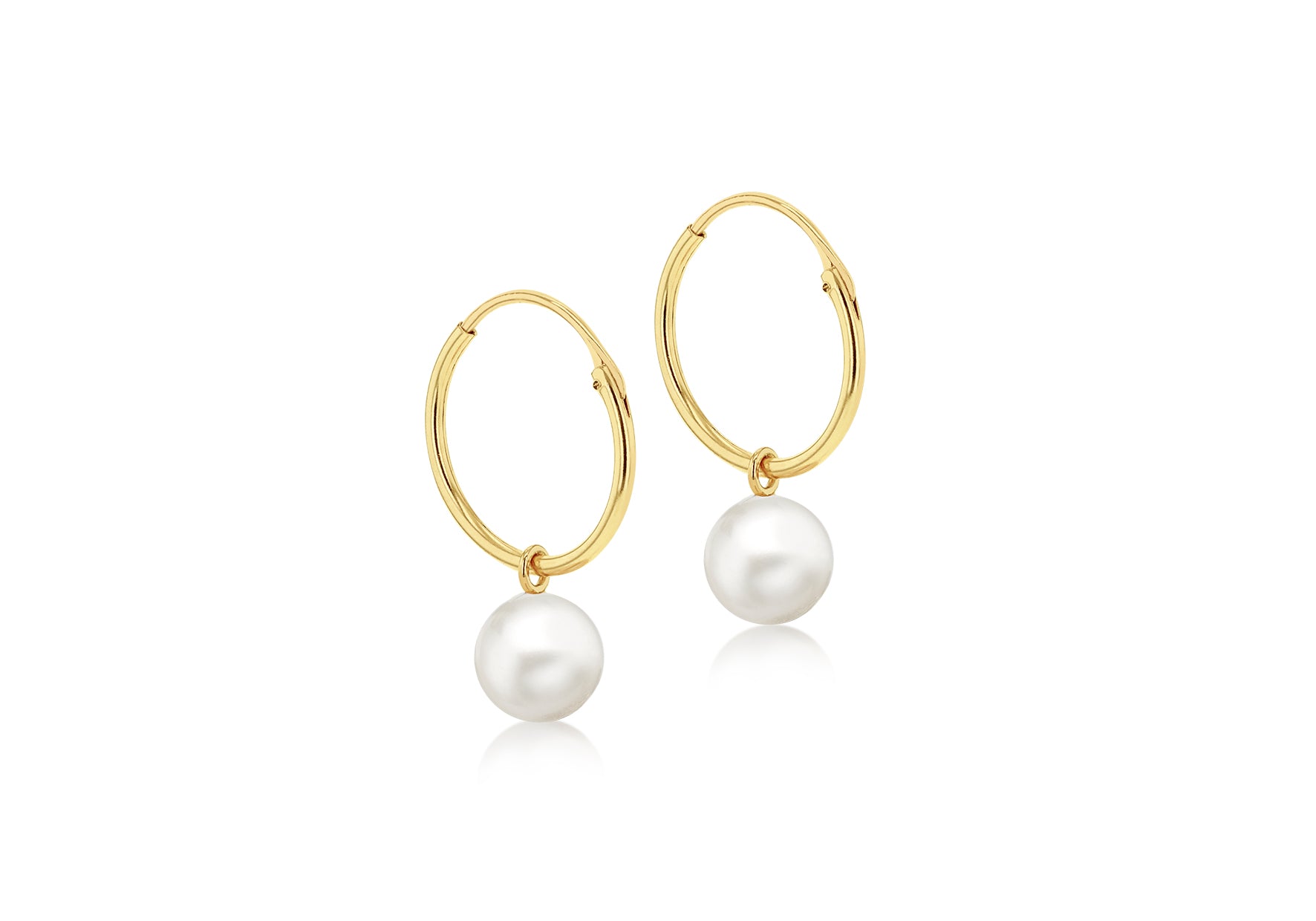9ct Yellow Gold Freshwater Pearl Hoop Drop Earrings