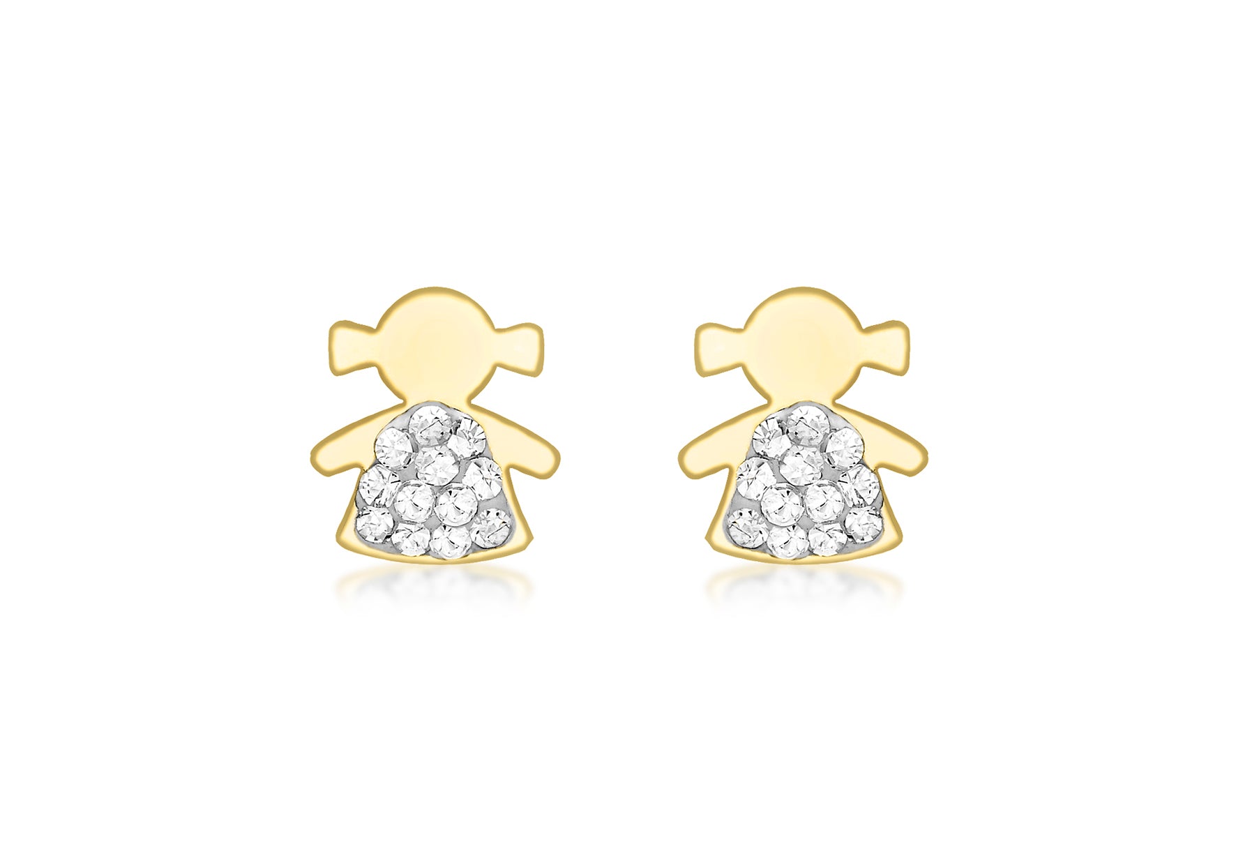 9ct Yellow Gold Pave Set Zirconia Little Girl Stud Earrings