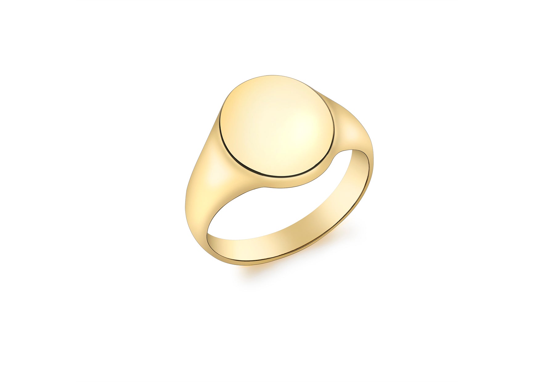 The high-polish finish enhances the warm glow of rich yellow gold, while the solid weight and smooth profile ensure a comfortable yet substantial presence on the hand. Whether worn as a traditional heirloom or a contemporary statement, this signet ring carries an enduring elegance that transcends trends.