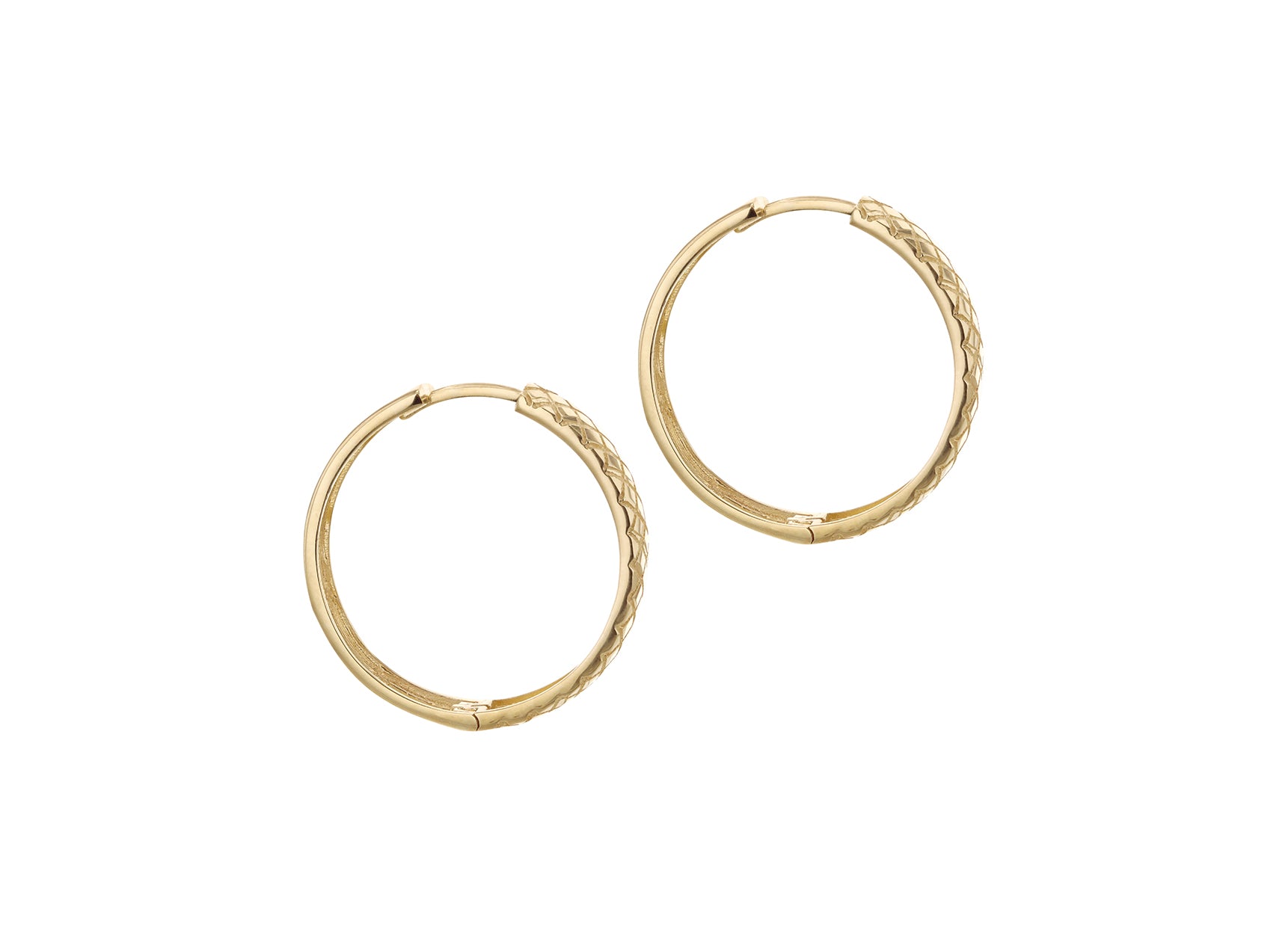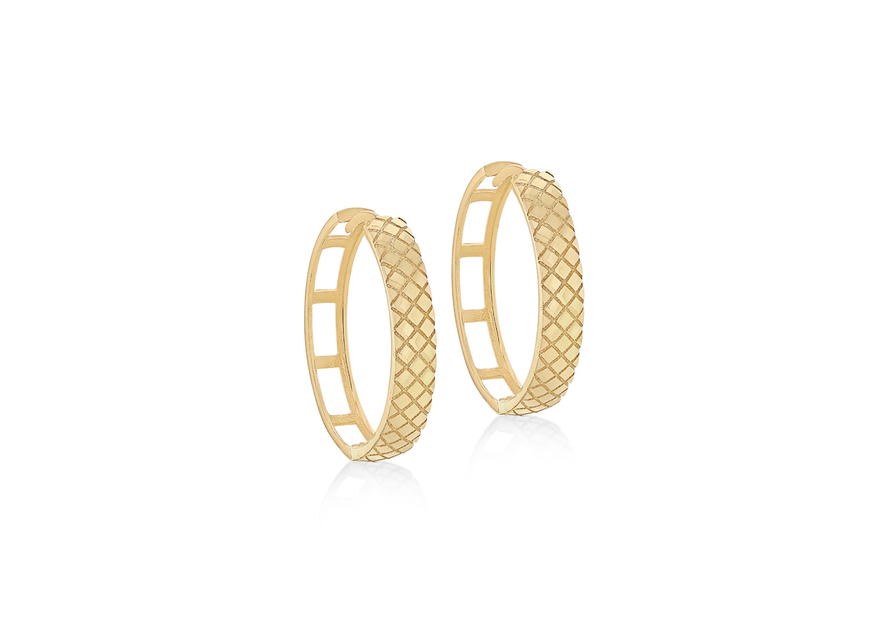9ct Yellow Gold Quilted Large Hoop Earrings