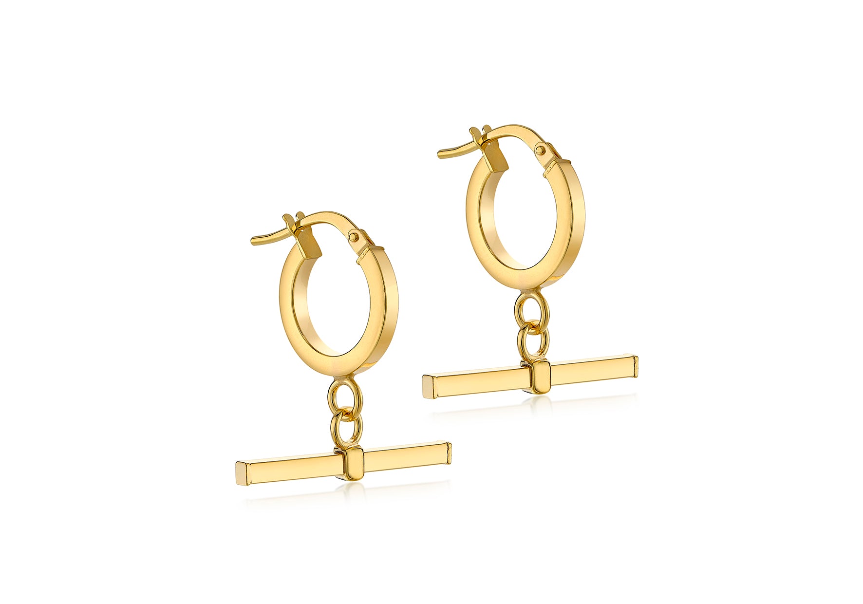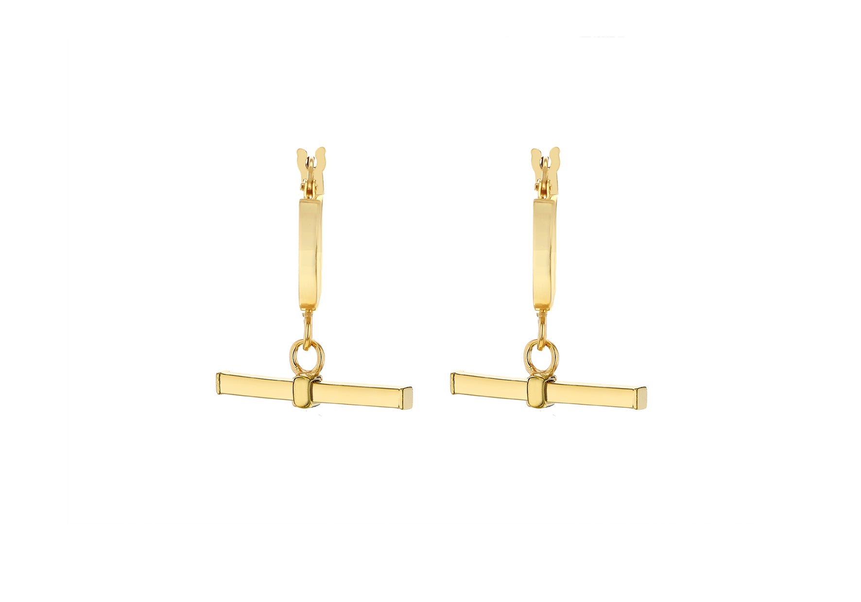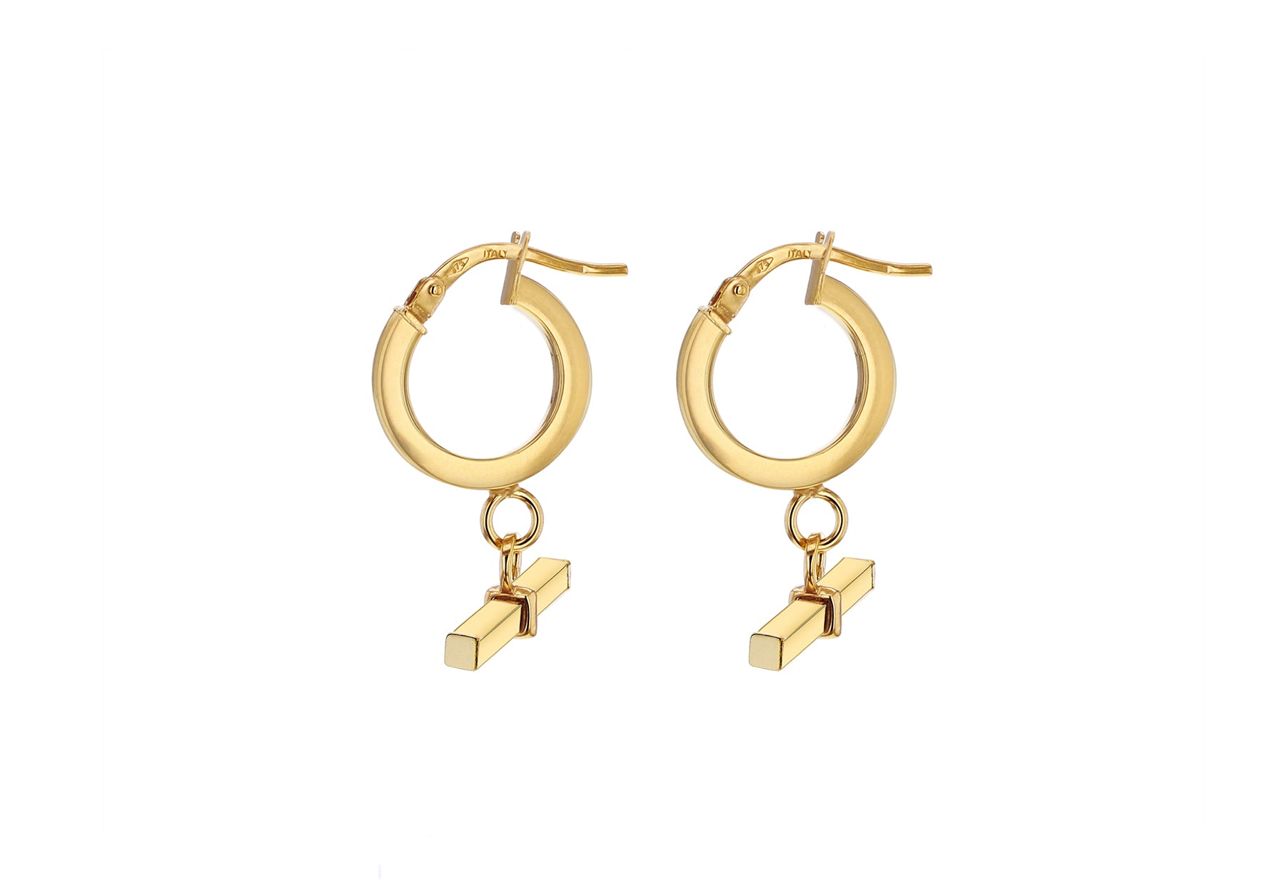 9ct Yellow Gold Square T-Bar Creole Hoop Earrings