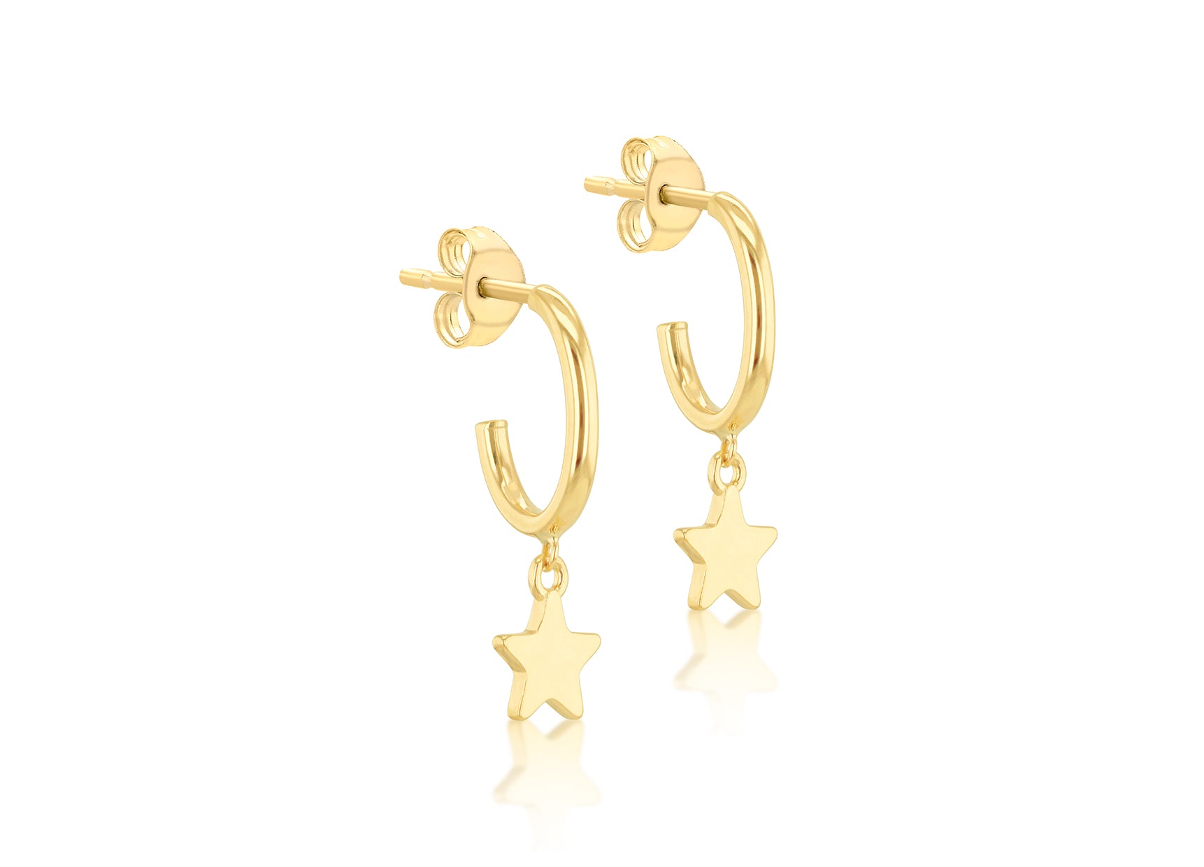 A delicate tribute to wonder and simplicity, these earrings offer a subtle yet playful accent to your everyday style. Each polished hoop holds a softly contoured star charm that moves gently with you, creating a graceful sense of lightness and motion.