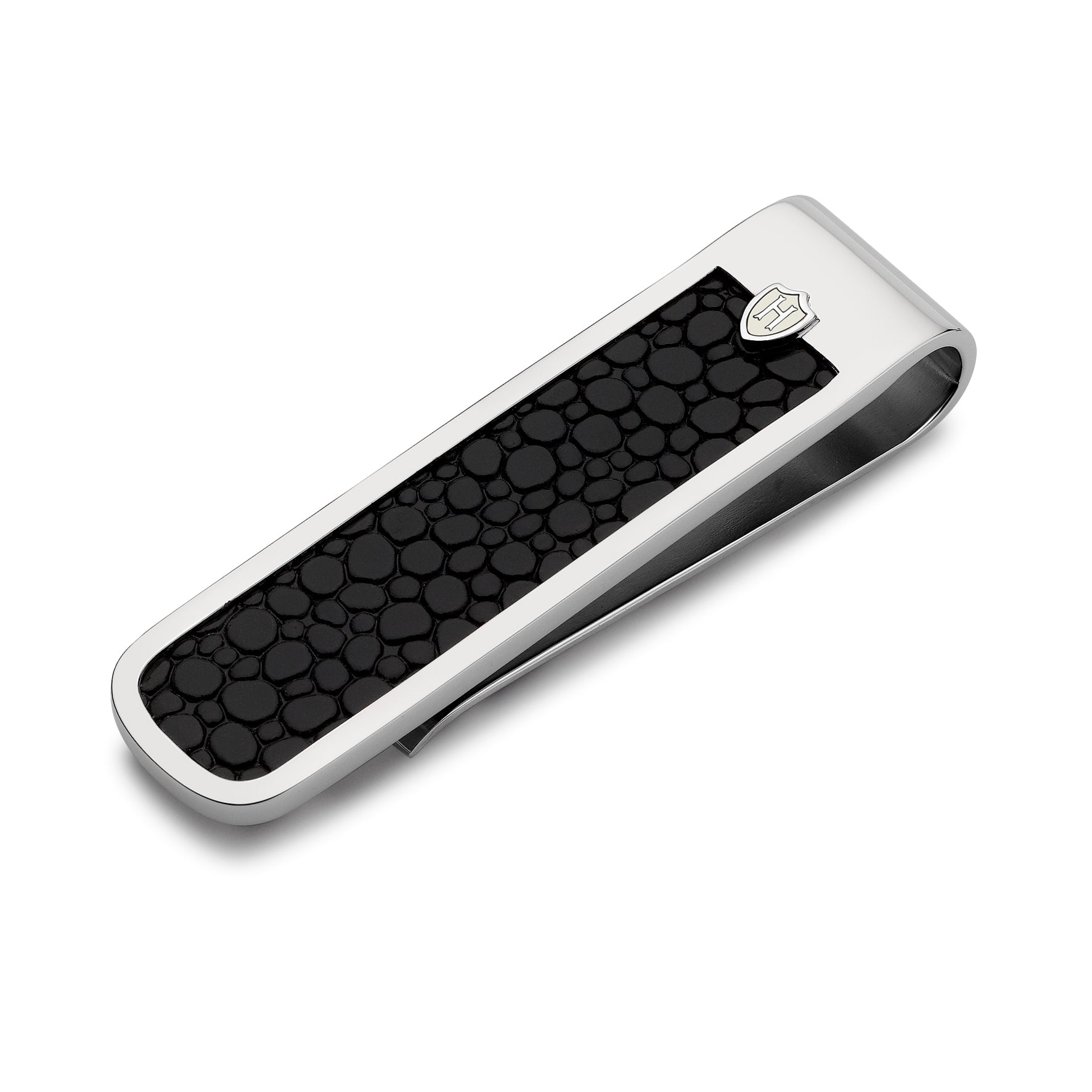 Hoxton London Men's Sterling Silver Black Leather Inlay Moneyclip