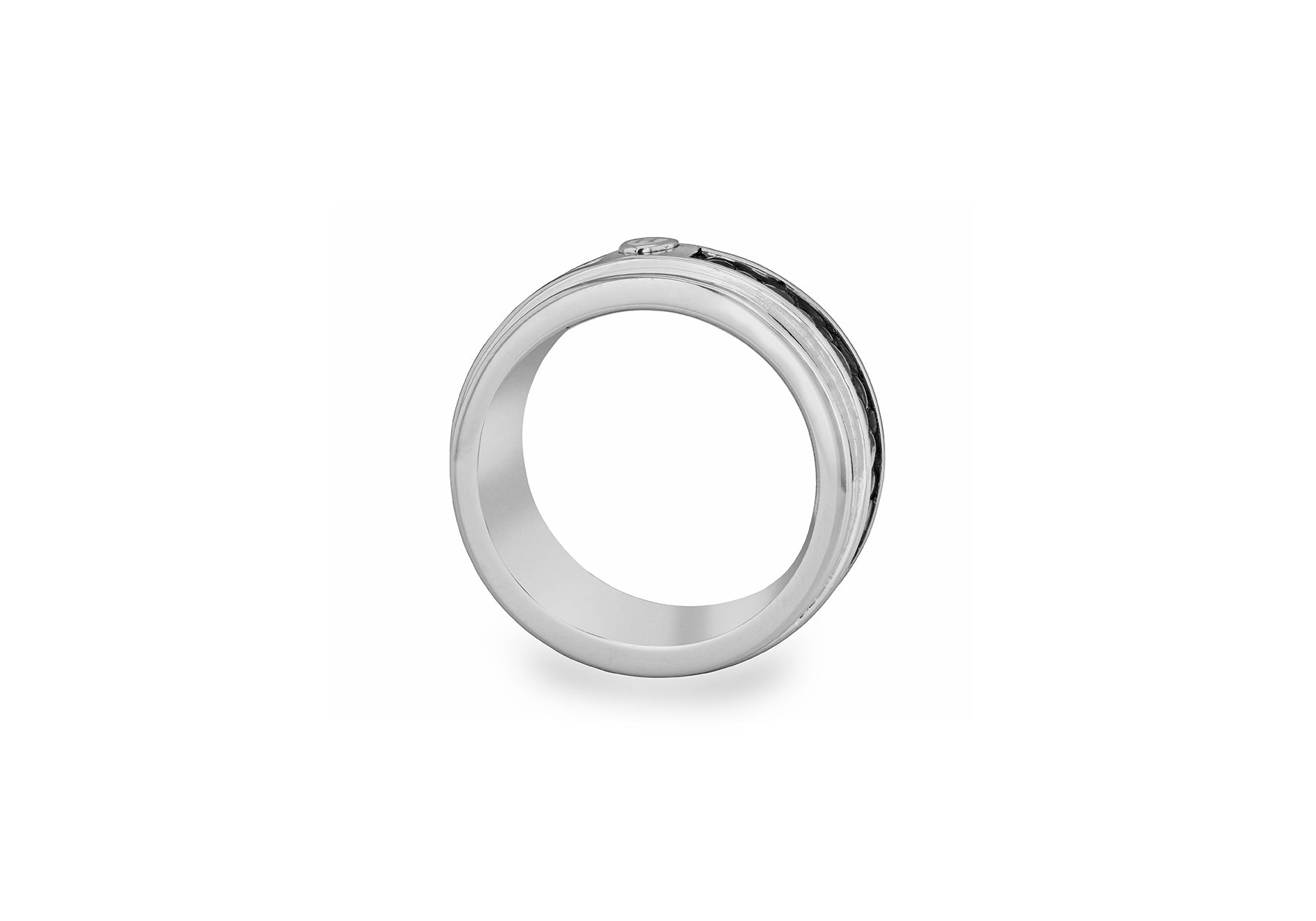 Hoxton London Men's Sterling Silver Black Leather Spinning Ring
