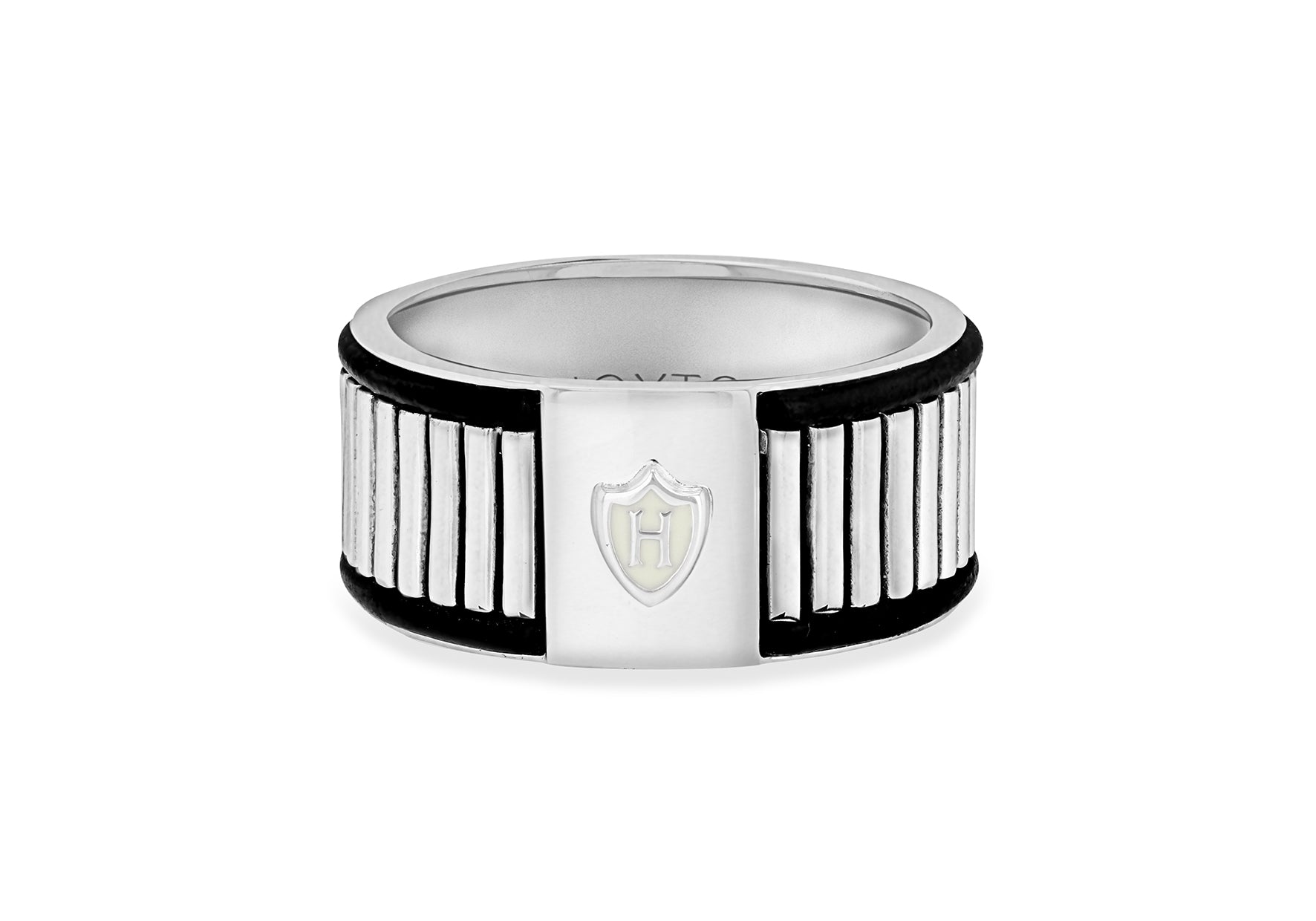 Hoxton London Men's Sterling Silver Bold Leather Ribbed Ring