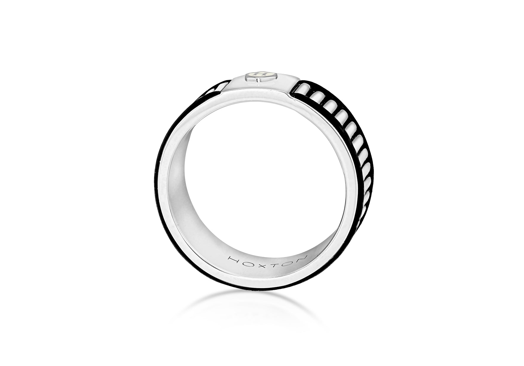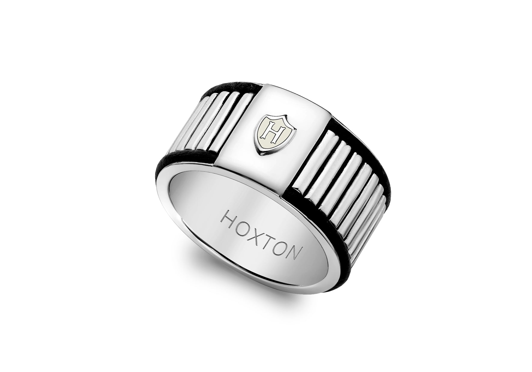Hoxton London Men's Sterling Silver Bold Leather Ribbed Ring Shank: 10mm; Brand: Hoxton Men's Jewellery Metal Colour: Silver Metal: Silver