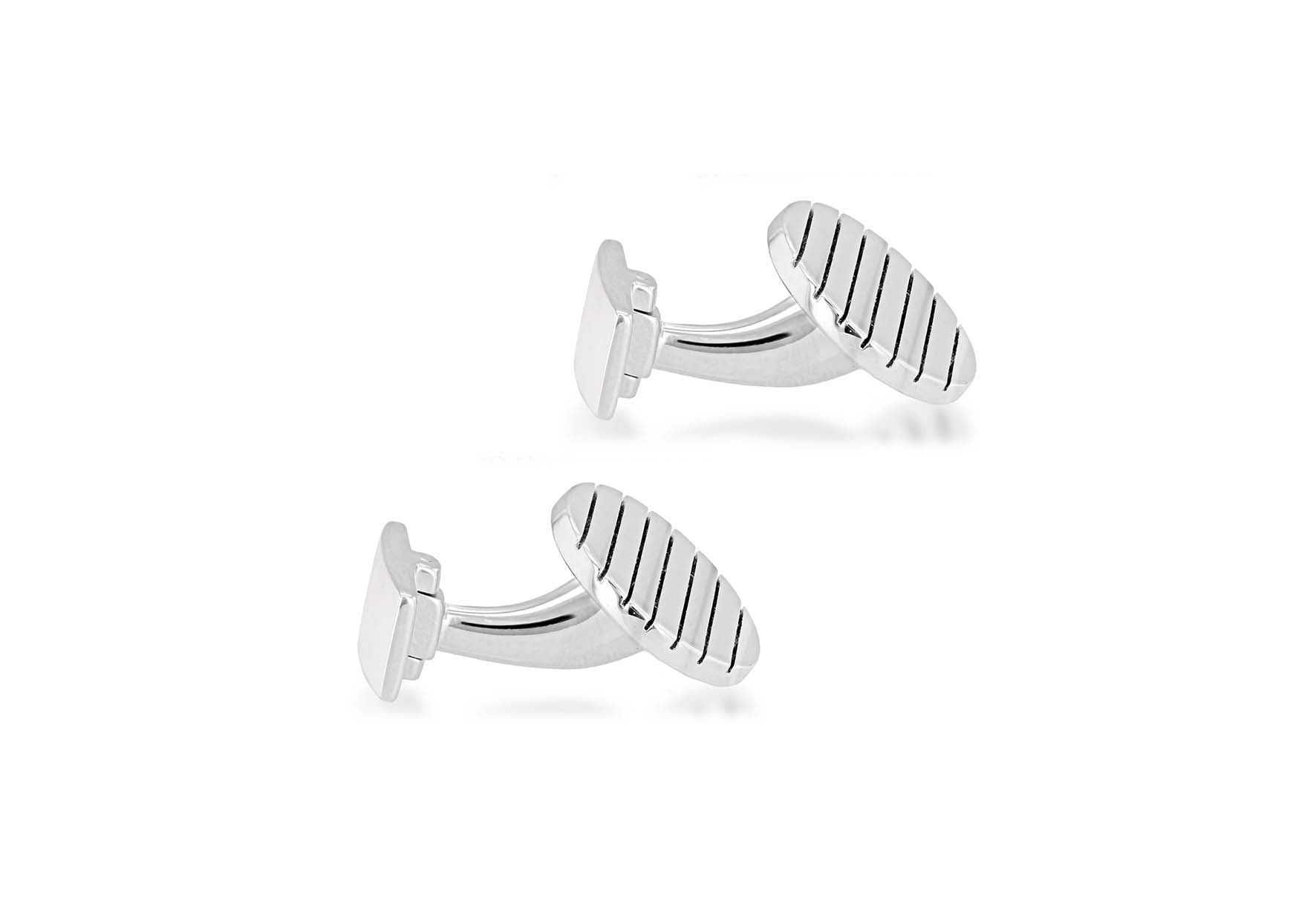 Hoxton London Men's Sterling Silver Round Ribbed Cufflinks