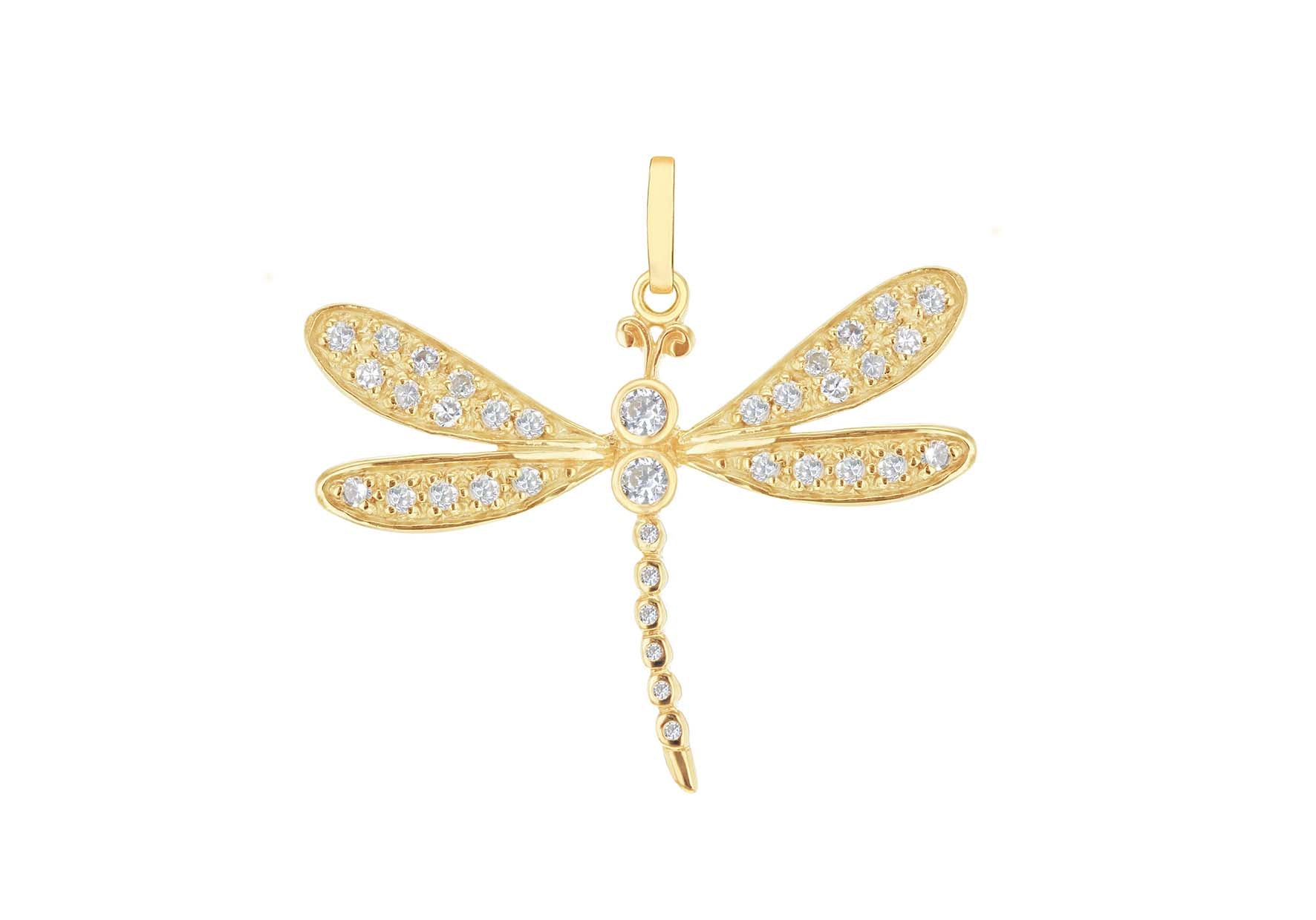 Sterling Silver Gold Plated White Zirconia Set Dragonfly Pendant