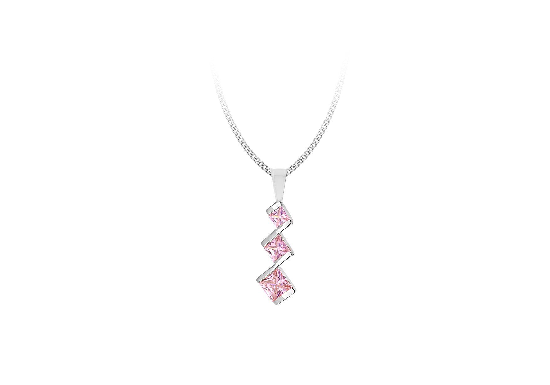 Sterling Silver Tri-Square Pink Zirconia Drop Pendant Style: Stone Set Metal Colour: Silver Metal: Silver
