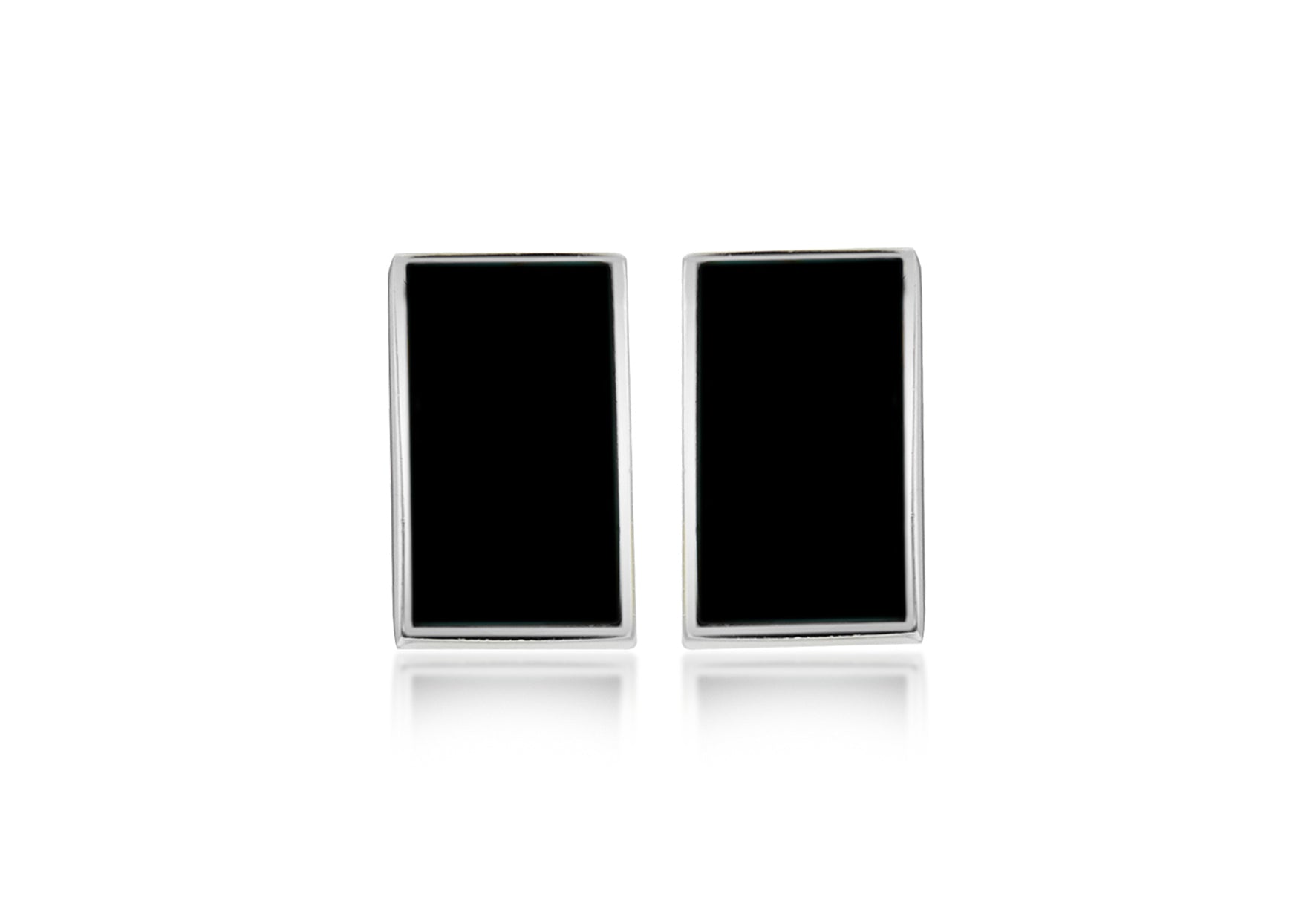 Sterling Silver Black Onyx Rectangle Stud Earrings