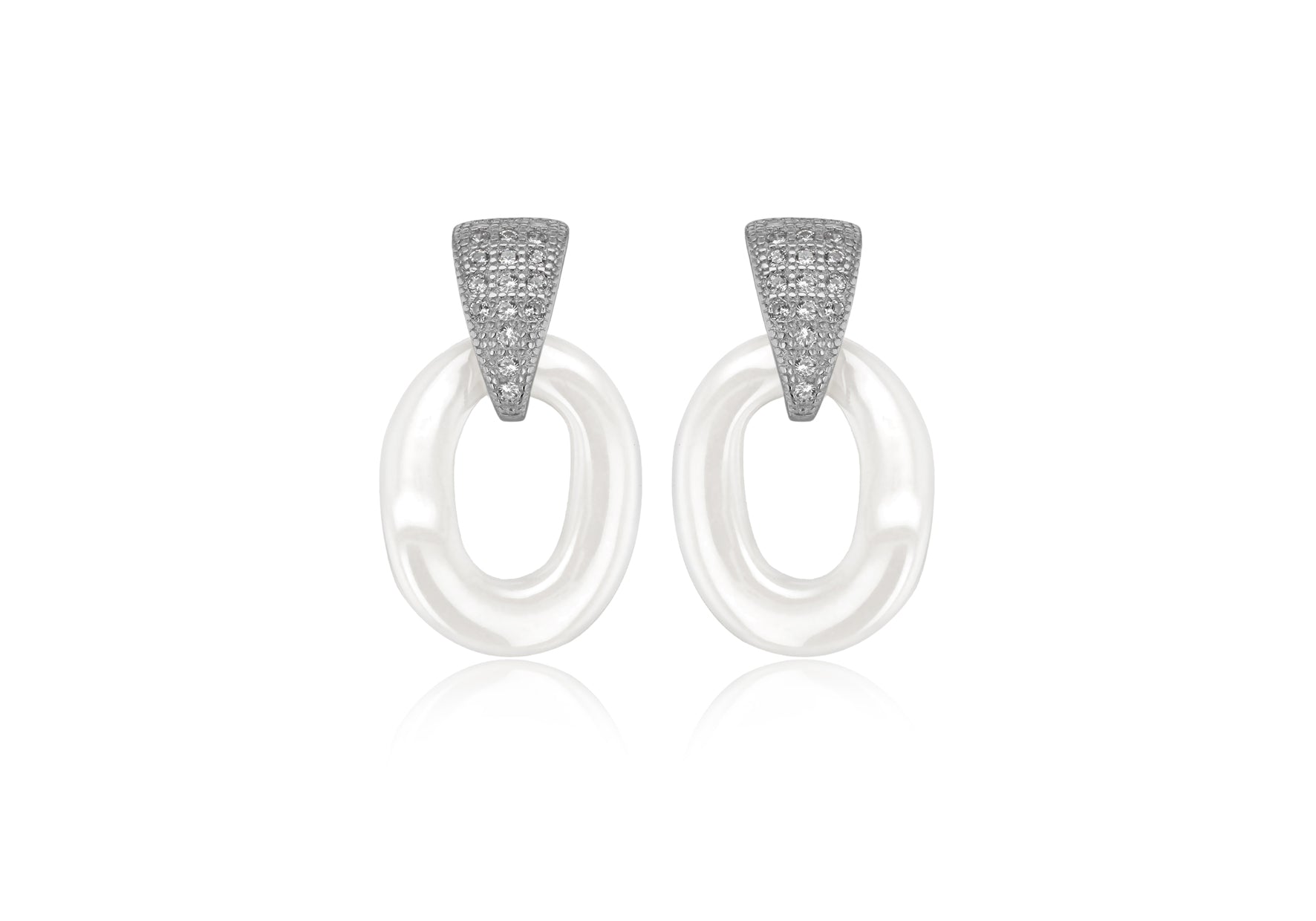 White Ceramic Sterling Silver Zirconia Stone Set Earrings