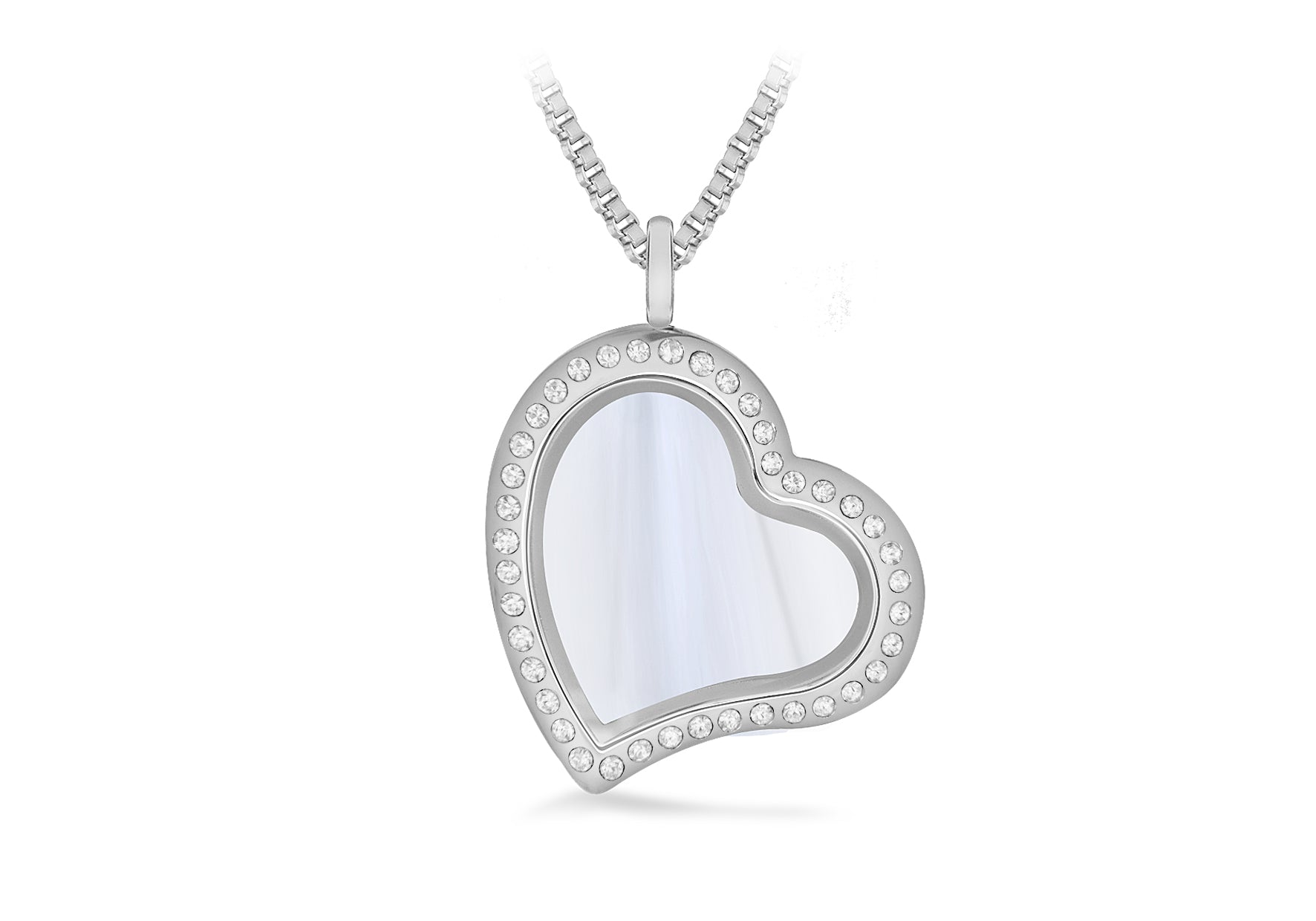 Steel Crystal Heart Treasure Charm Locket on Box Chain