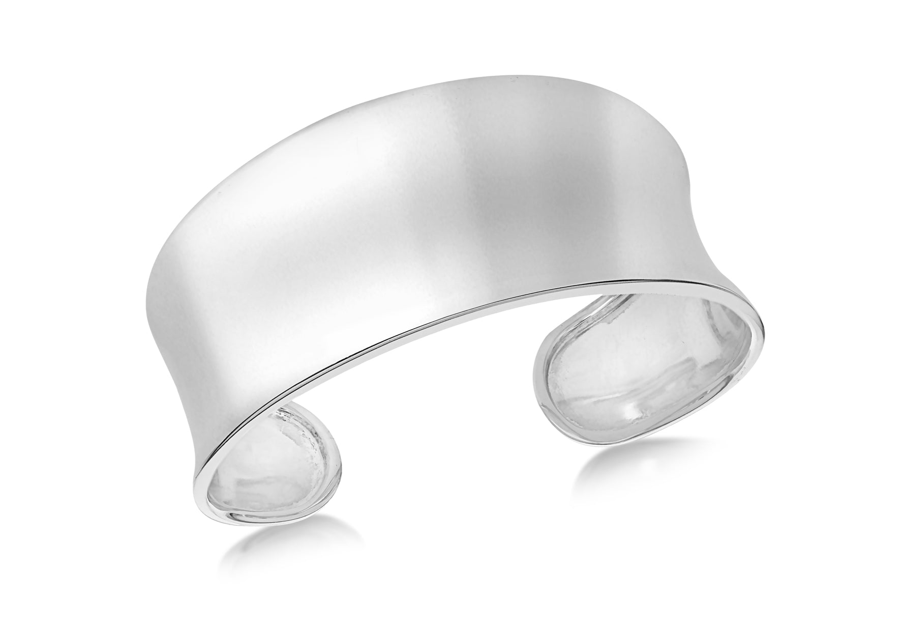 Shape: Oval Bangle Width: 17mm-30mm Width: 71.3mm Height: 56mm Finish: Polished Clasp: Cuff Style: Plain Product Type: Bangles Metal Colour: Silver Metal: Silver