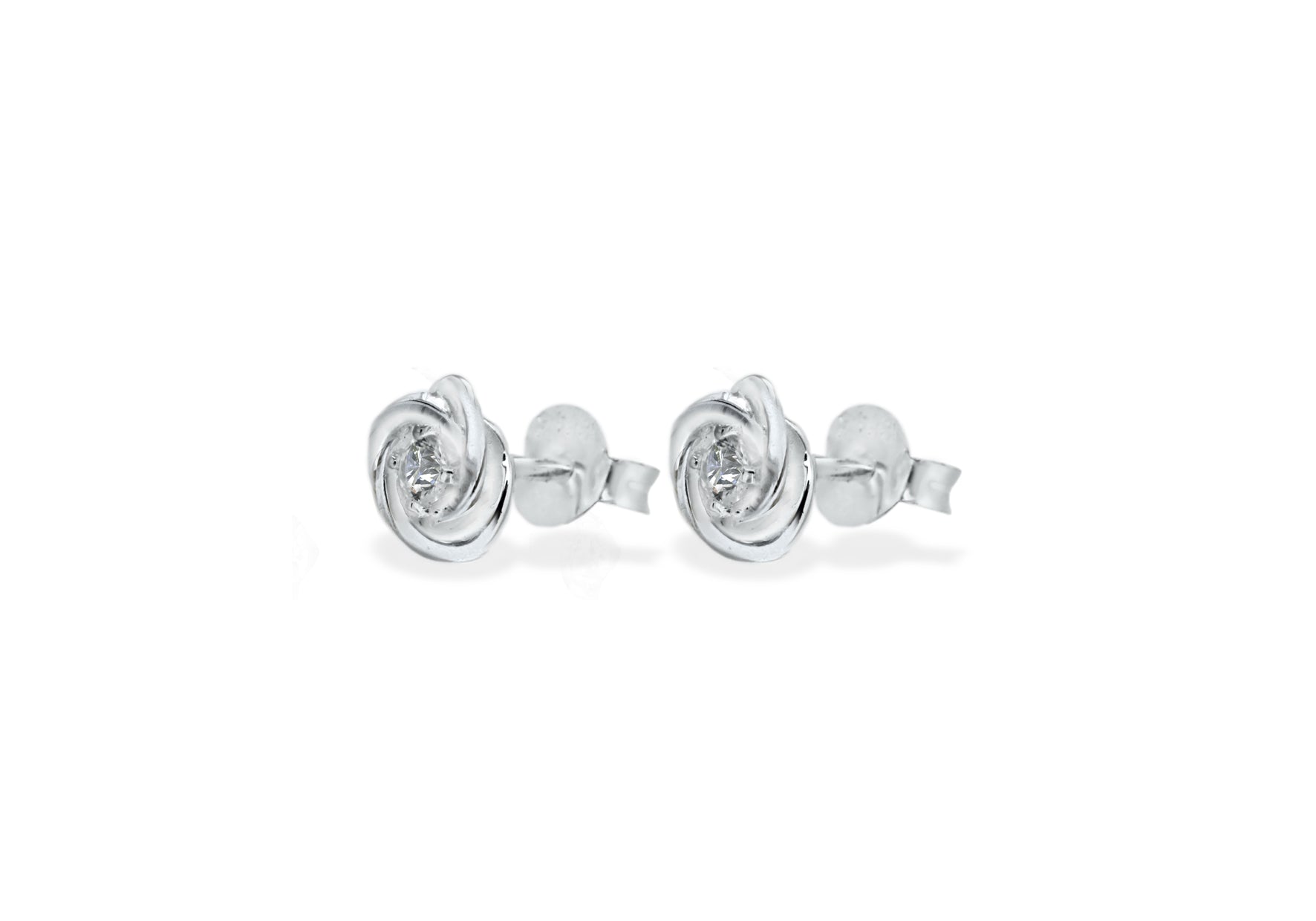 Width: 6.6mm Height: 6.6mm Finish: Polished Fitting: Post Setting: Claw Stone Details: 2 x 2.4mm Round White CZs Style: Stud Product Type: Earrings Metal Colour: Silver Metal: Silver