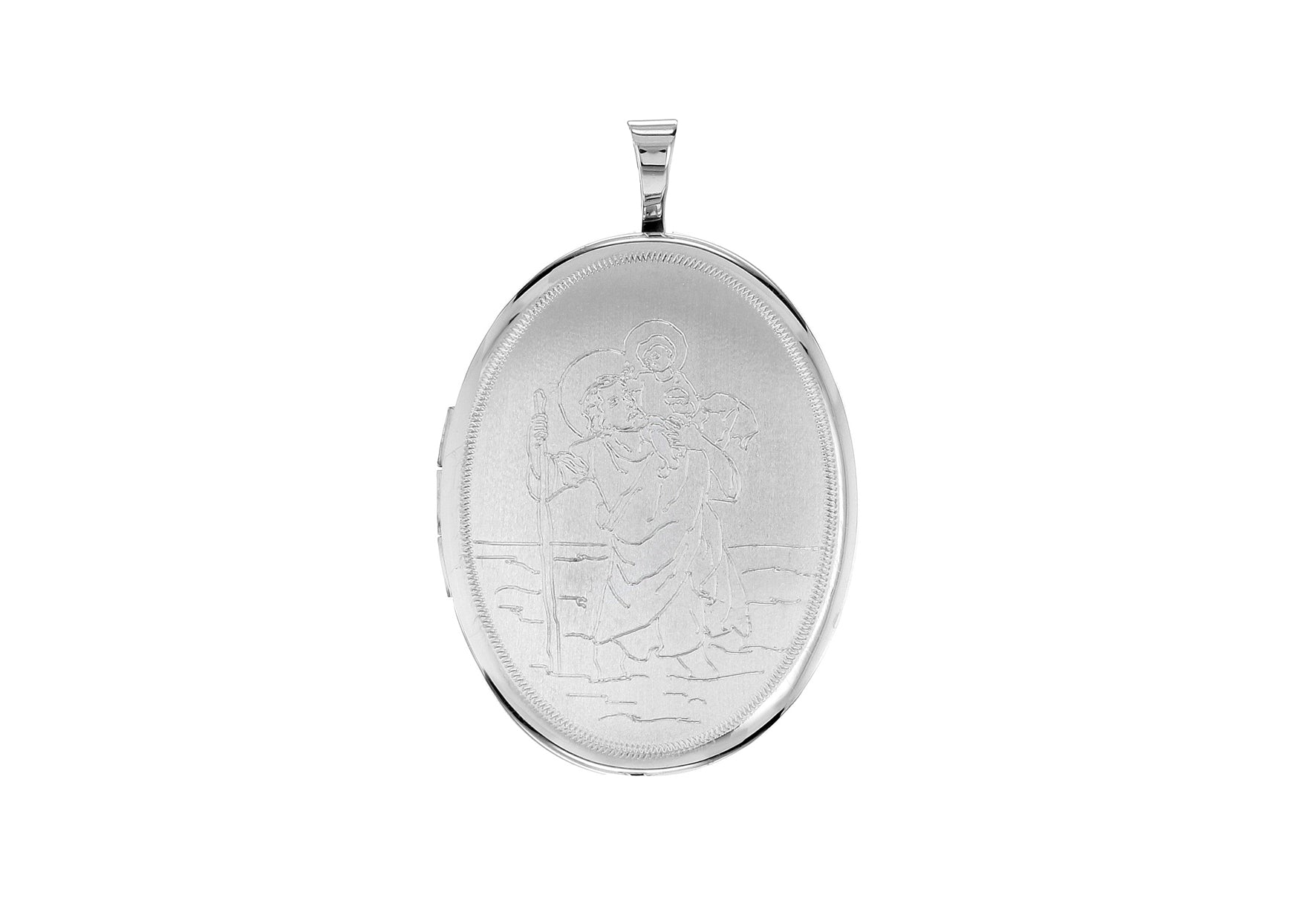 Sterling Silver Etched St Christopher Oval Locket Details: Inscription on reverse; Pendant Height: Including Bail 32mm; Pendant Width: 20mm; Style: Lockets Metal Colour: Silver Metal: Silver