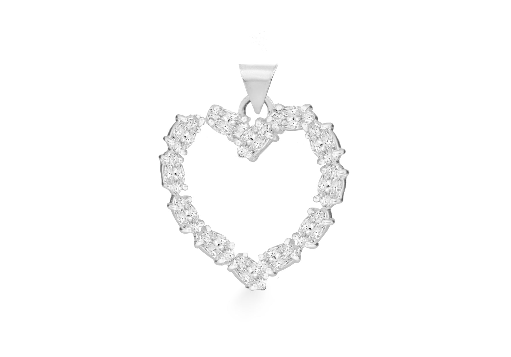 Sterling Silver Oval Zirconia Large Open-Heart Pendant
