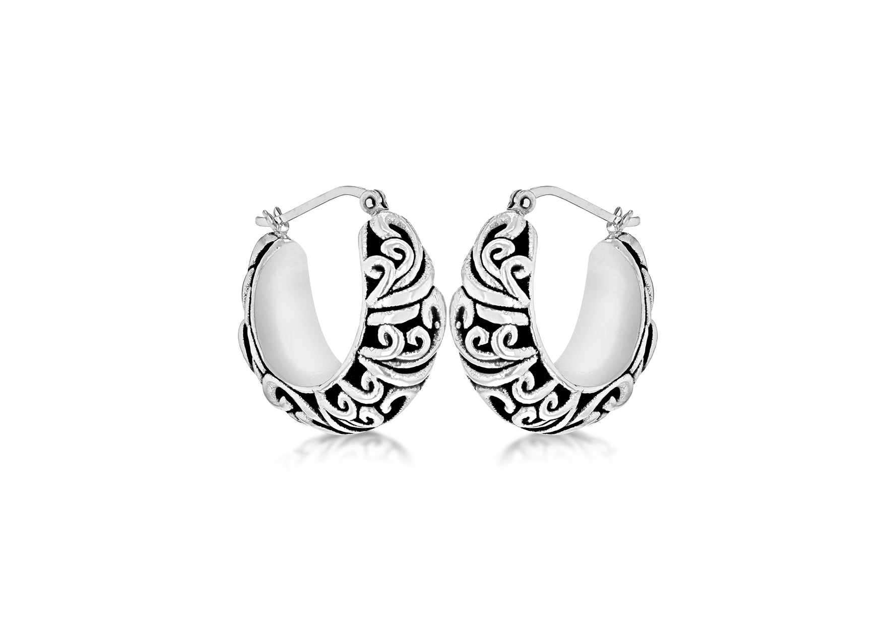 Sterling Silver Oxidised Antique Style Patterned Creole Earrings