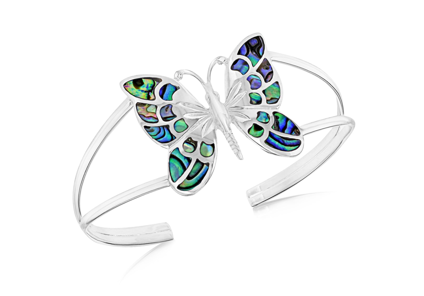 Paua Sea Shell Sterling Silver Butterfly Bangle